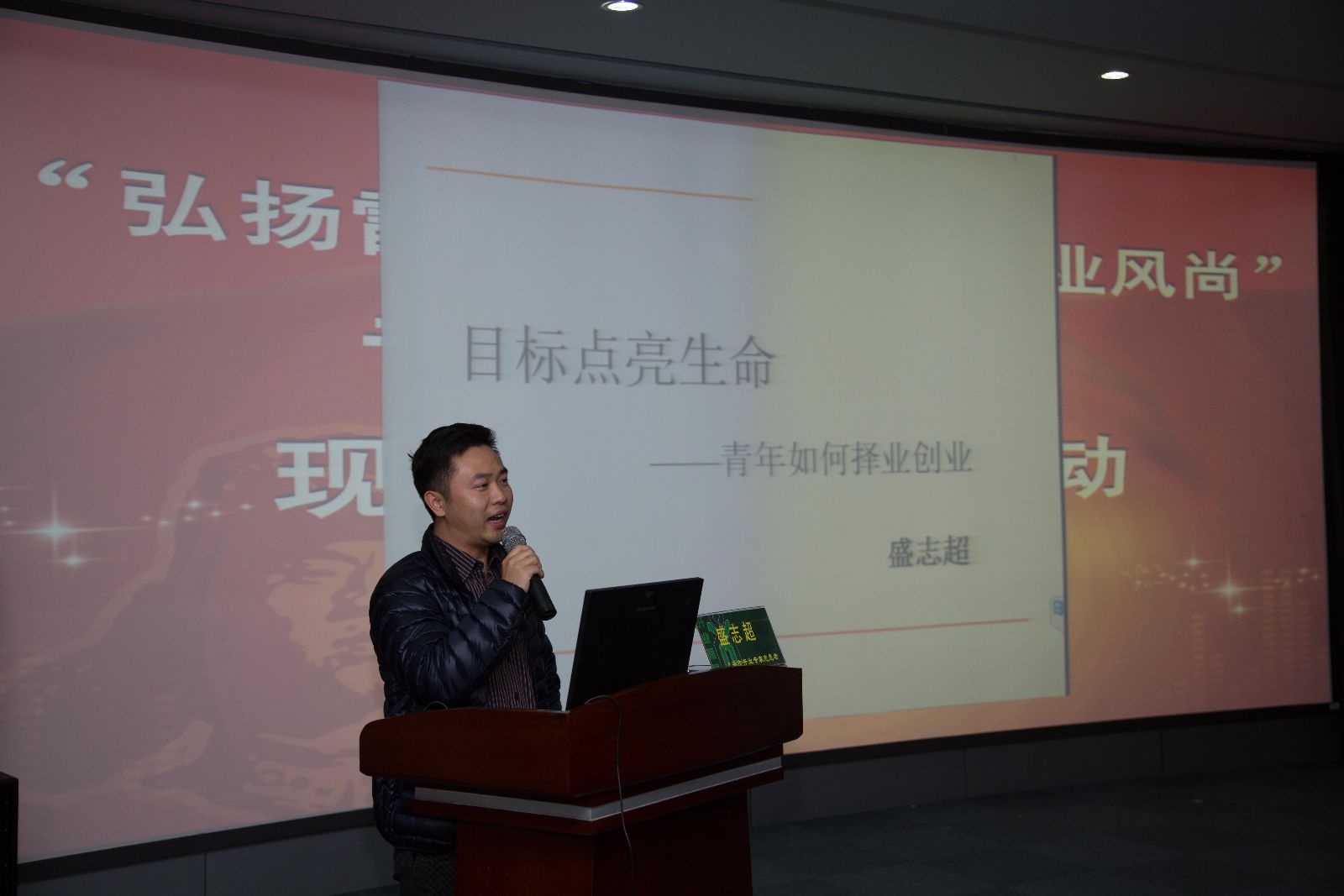 图1:盛志超总经理作《青年如何择业创业》主题讲座