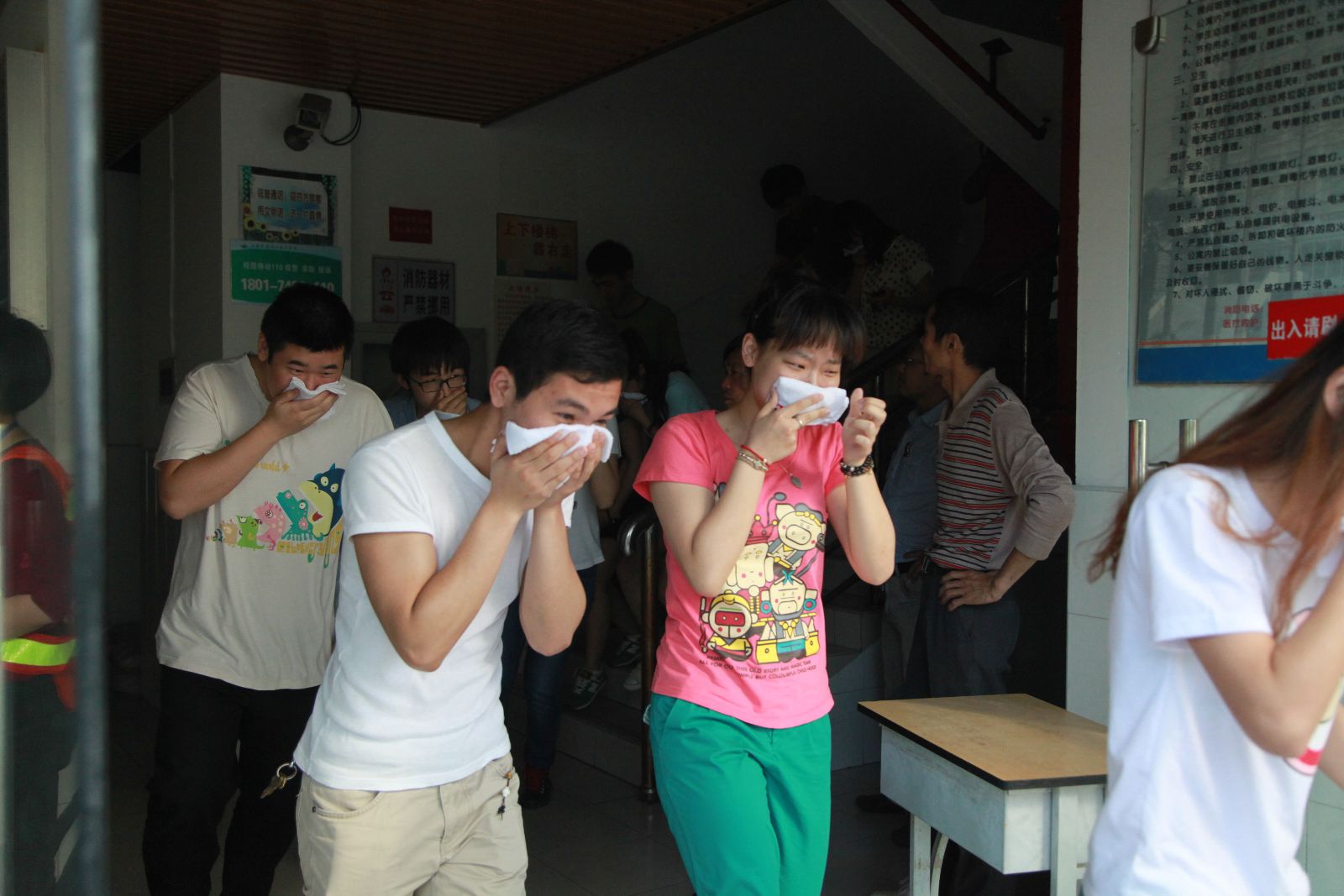 15点45分,6号楼学生公寓201宿舍因使用“违章电器”引起火灾,随着楼内警报声响起,疏散组人员立即到达指定岗位,引导楼内学生快速疏散,学生弯着腰,用湿毛巾捂住口鼻,沿着逃生路线快速有序撤离到学院操场的安全地带,随后,消防队人员迅速进入现场进行灭火救援,场外医务人员对伤员进行现场急救,统计小组清点人数。经过消防官兵的努力和各部门人员的协同配合,整个宿舍楼撤离用时共计2分37秒,200余名师生全部安全疏散完毕。