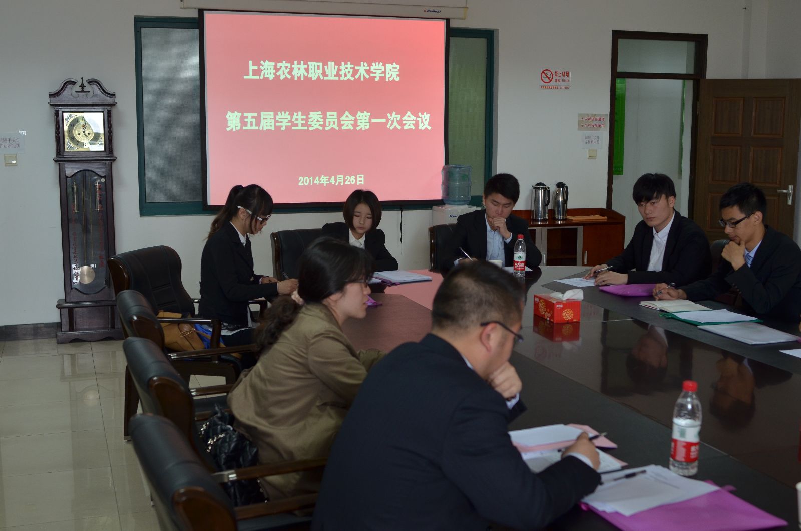 上海农林职业技术学院第五次学生代表大会胜利闭幕后,院学生会第五届委员会第一次会议在综合教学楼1002会议室举行,团委书记许昊和院学生会第五届委员会11名委员参加会议。