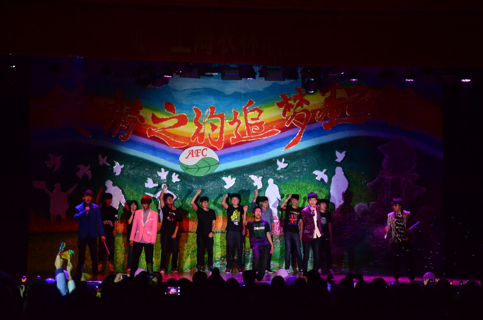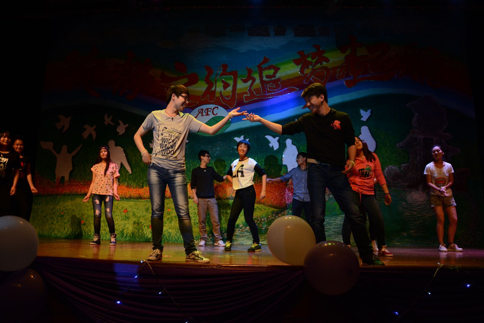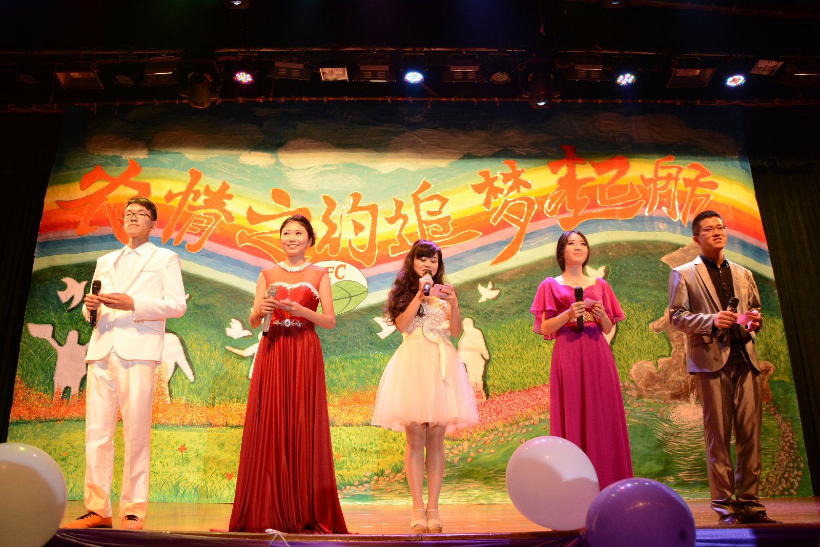 晚会在05级毕业学生李炯韬和舞蹈队同学们共同带来的极具动感的现代舞《Dancing for dream》中拉开帷幕,动感的音乐旋律,劲爆的舞蹈动作将大家的热情瞬间点燃。随后,各系新生代表们纷纷表演了曳步舞《神秘旋律》、歌曲串烧《那些年,我们追过的经典》、小品《选择与尊重》、瑜伽表演《落花》、藏族舞《我们的喜马拉雅》等节目,精湛的舞技和精彩的表演,给大家带来了强烈的视觉冲击。由园艺园林系园林142班徐斌带来的一曲《我的中国心》更是将晚会推向高潮,现场一片欢腾。伴随着由新换届团学干部带来的舞蹈《小苹果》后,全体演员走上舞台,晚会圆满落下帷幕。