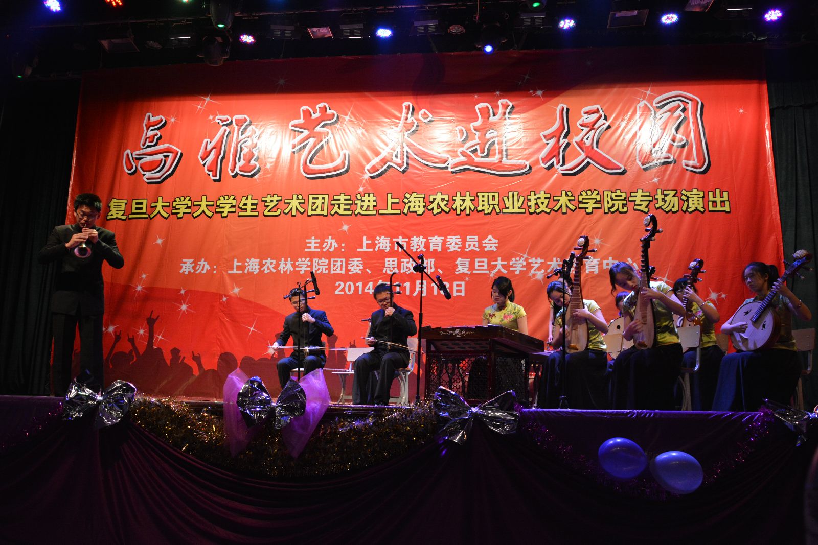 11月18日,由上海市教委主办,学院团委、思政部和复旦大学艺术教育中心共同承办的高雅艺术进校园——复旦大学大学生艺术团专场演出在学院大礼堂举行。学院相关部门负责人,支部书记,思政部教师,辅导员和全体14级新生共1200多名师生观看了表演。
