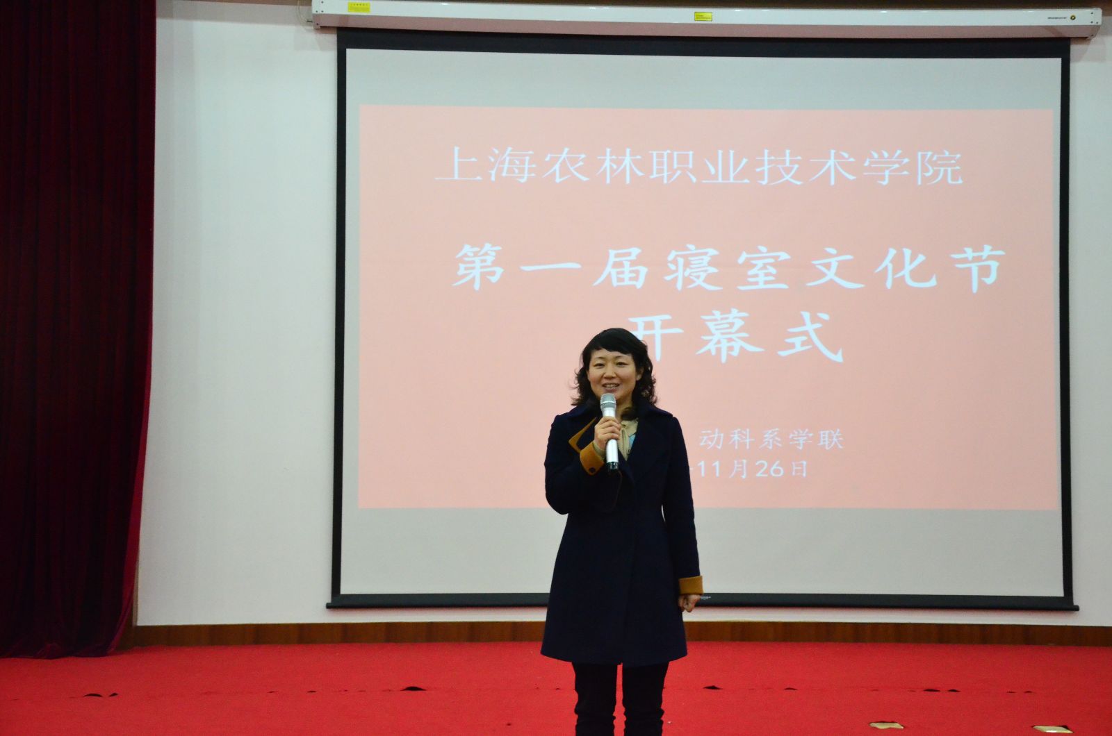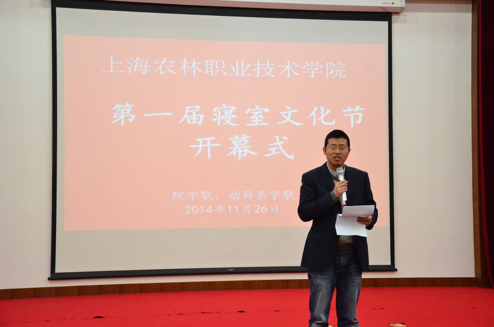 11月26日,由院团委主办、动物科学技术系承办的第一届寝室文化节在综合楼报告厅举行开幕仪式。学生处处长刘秀云、动科系党支部书记杜波及学生处、团委相关老师、各系团总支书记、辅导员、宿管代表以及200余名学生参加此次开幕式。