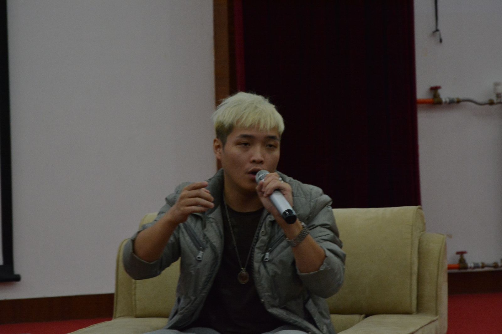 两位嘉宾首先为同学们讲述了他们参加“中国达人秀”的台前幕后经历,以及彼此相遇相知的故事。刘伟回顾了自己坎坷的人生经历,虽然命运让他失去了双臂,但他选择了精彩地生活,正如他自己所说的“我的人生中只有两条路,要么赶紧死,要么精彩地活着”让在场的所有人为之动容。紧接着寿君超讲述了自己的成功经历,与同学们分享了他对RAP文化的看法,在同学们的建议下,寿君超还现场奉献了一段说唱表演,引爆现场气氛。访谈间,两位嘉宾鼓励同学们要有信仰,有梦想,怀抱志向,努力朝着自己的梦想前进,人生总是充满变数,但梦想永不言弃。