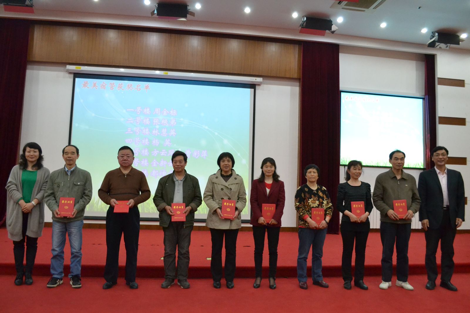 杜波致闭幕词,他表示寝室是一个会产故事的场所和情感发酵的容器,是室友共同的家,希望大家要珍惜友情、学会团结互助、学会生活、学会感知人情冷暖;刘秀云、许昊分别宣布了获奖名单,周金标等八位宿管荣获最美宿管荣誉称号,一号楼110等16个寝室分别荣获寝室美化设计大赛、logo设计大赛、征文比赛等奖项,并进行了颁奖;动科系动科133班范超杰同学做了活动总结;歌曲《青春纪念册》、《我的好兄弟》和小品《《最美的青春,最美的寝室》》真实再现了寝室生活的点点滴滴,将整场活动推向了高潮。