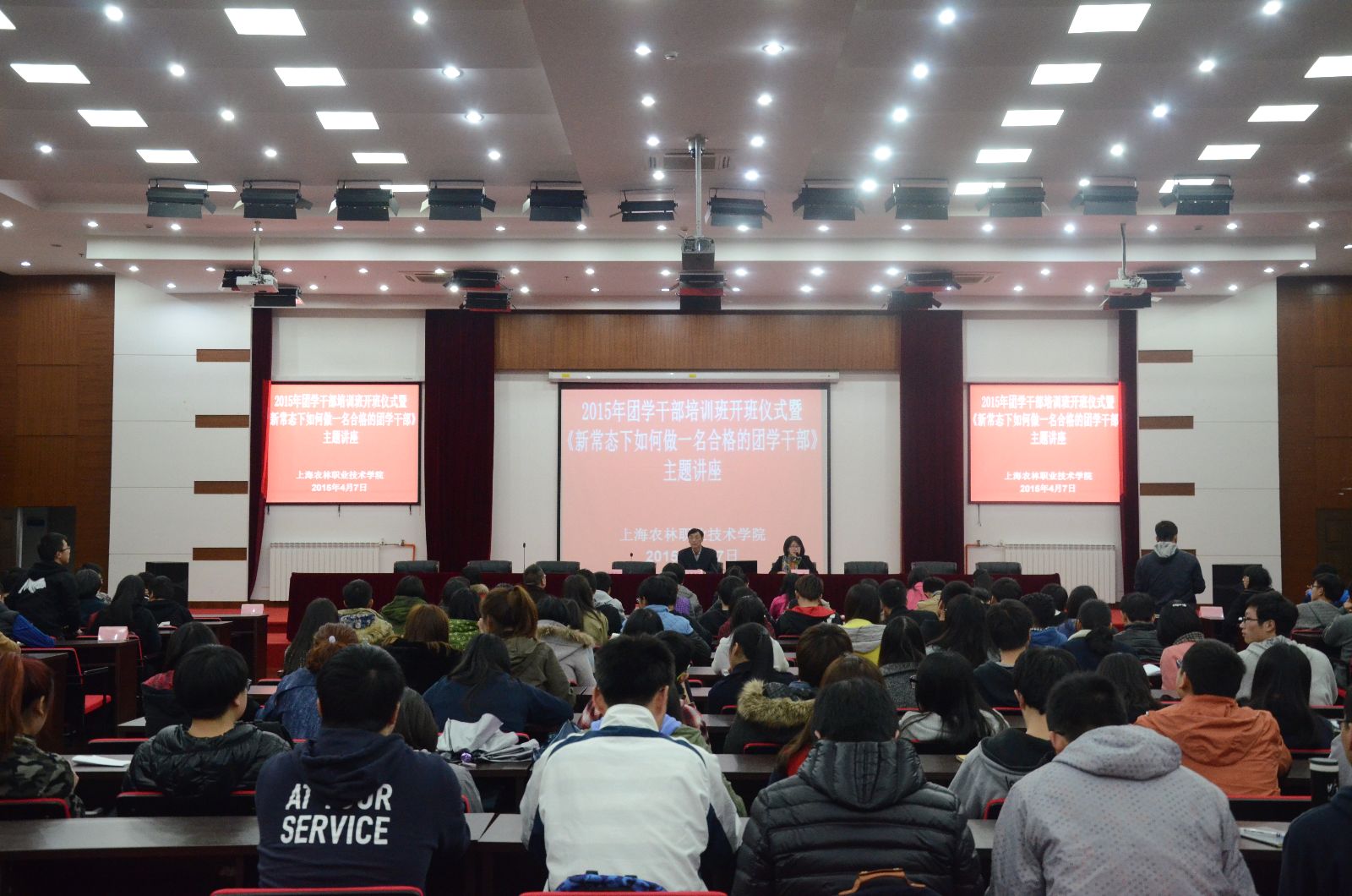 4月8日,2015年团学干部培训班第一讲暨开班仪式在综合教学楼学术报告厅举行,学院党委副书记、副院长俞锦禄出席开班仪式并就《新常态下如何做一名合格的团学干部》为200余名团学干部作了专题培训,开班仪式由院团委书记许昊主持。