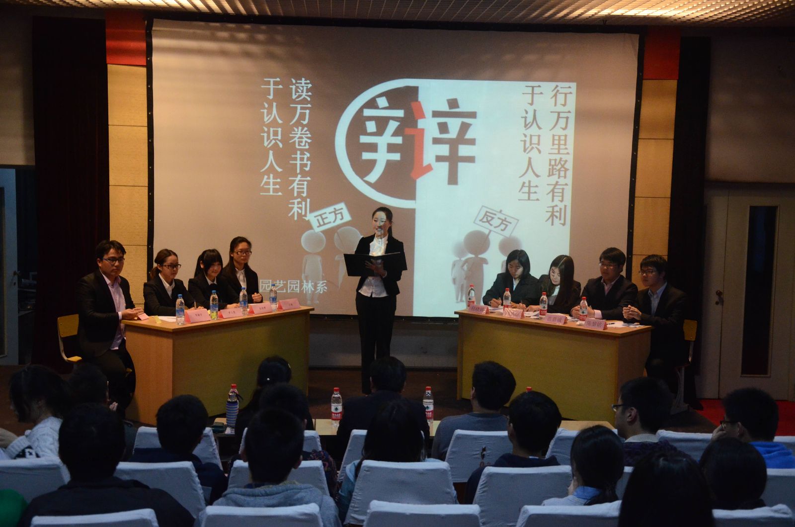 4月16日晚,由院团委主办,院学联学科部承办的第三届“尚农杯”首轮辩论赛在农经楼报告厅举行,园艺园林系和农经系就“读万卷书有利于认识人生”还是“行万里路有利于认识人生”展开激烈角逐。