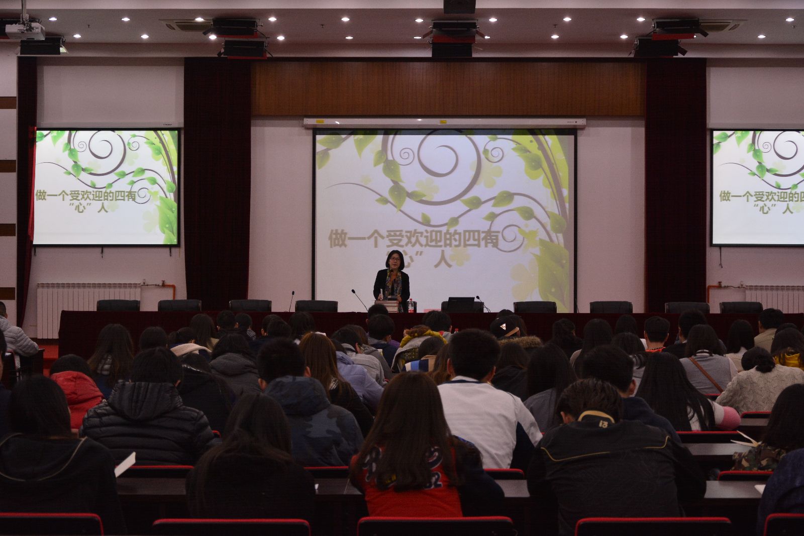 4月14日,2015年团学干部培训班第二讲在综合楼学术报告厅举行,团委书记许昊老师就《做一个受欢迎的四有“心”人》为200余名团学干部、干事做了专题讲座。