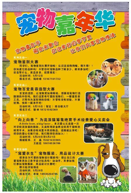 此次宠物嘉年华以动物科学技术专业特色为依托,结合志愿服务精神,激发学生热爱专业、服务专业的热情,普及专业知识、加强实践锻炼、加深宠物情缘,展现当代农林学子风采。5月将陆续开展宠物鉴别大赛、宠物百变美容造型大赛、“向上向善”为流浪猫筹集绝育手术经费爱心义卖会、“宠爱衣生”宠物服装、用品设计大赛等形式各异的趣味活动。