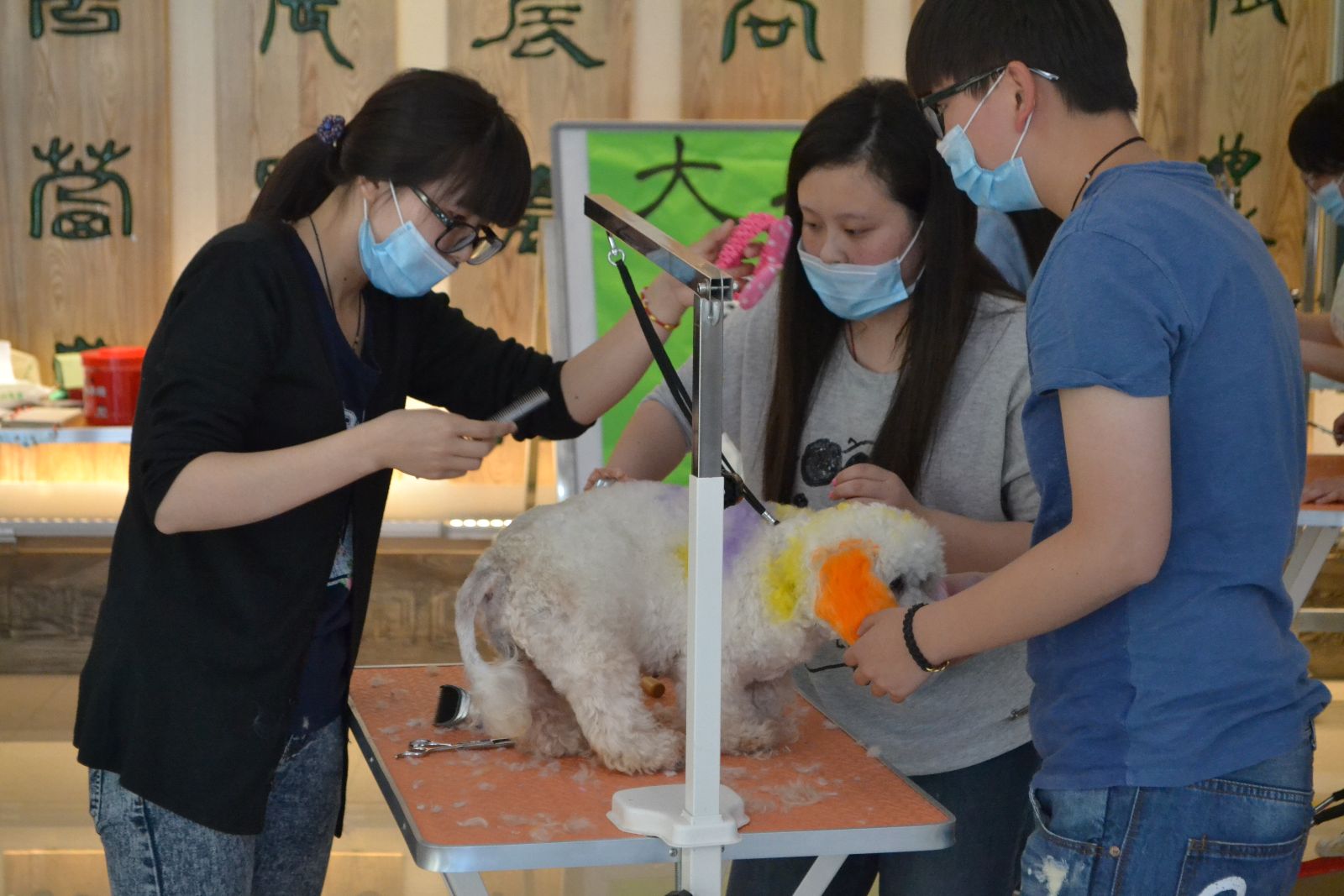 5月12日下午,宠物嘉年华之宠物美容造型设计大赛在综合楼大厅举行,派德宠物学院专家老师、宠物美容专业老师张欣怡、学院宠物医院医生沈丽担任此次比赛评委,团委老师、各系辅导员、学生代表共80余人观看了比赛。