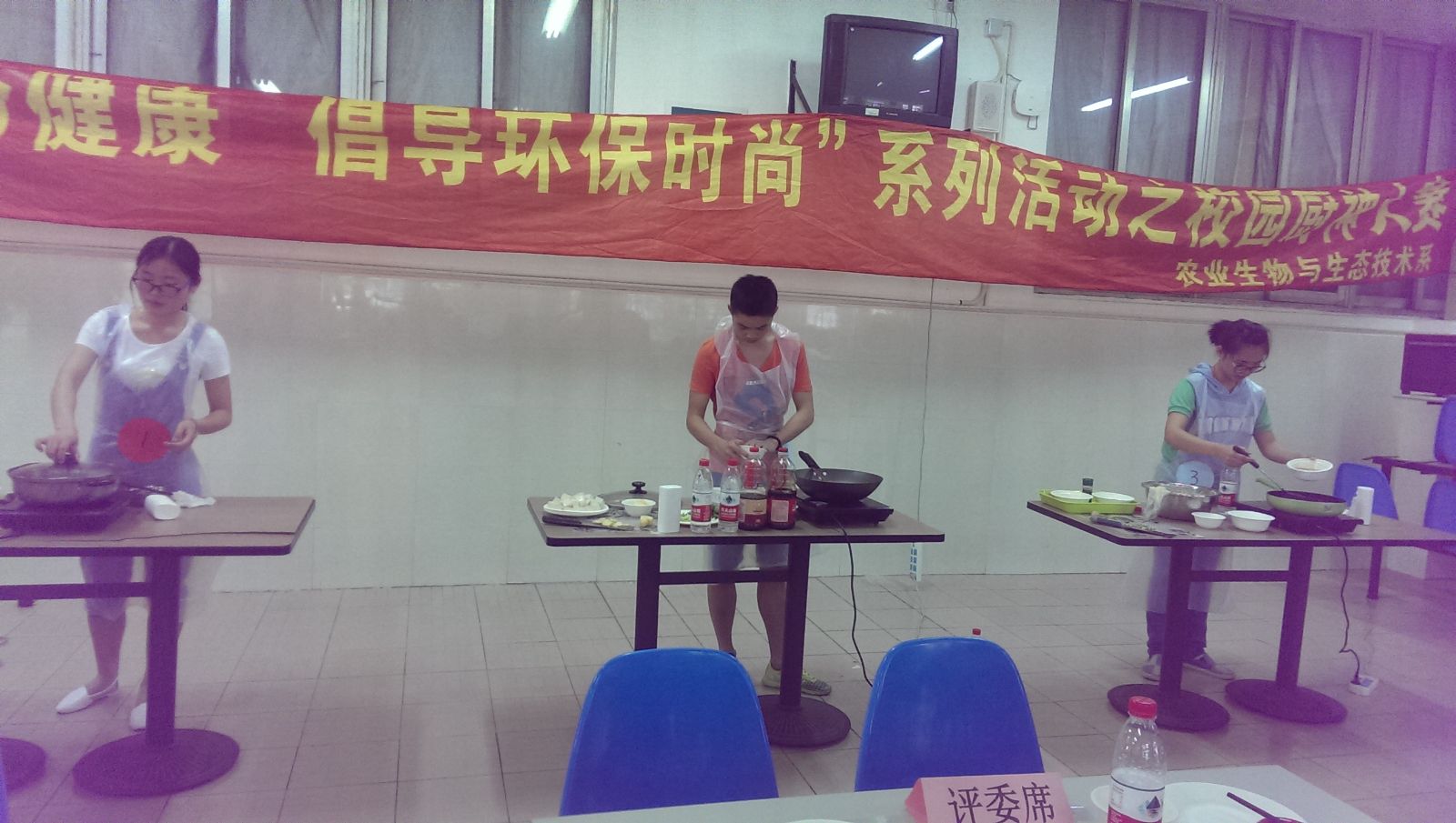 5月21日下午,由院团委主办,农生系承办的“关爱生命健康 倡导环保时尚”——校园厨神大赛决赛在学院第二食堂拉开赛幕。院办、团委、各系团总支、辅导员等共同参加了活动并担任评委。