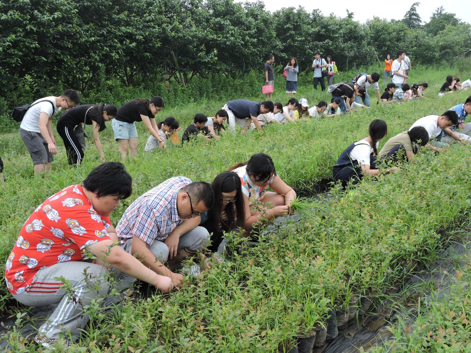 在农事体验活动中,同学们参观了松江区泖港蓝莓园,蓝莓园的创始人吴晓春教授和同学们分享了自己的创业经历,告诉同学们在未来的求职之路上要创新、刻苦和坚持。随后园区负责人为同学们介绍了蓝莓的种植和培养,指导同学对蓝莓进行拔草修剪,进一步体验了农耕文化的内涵。