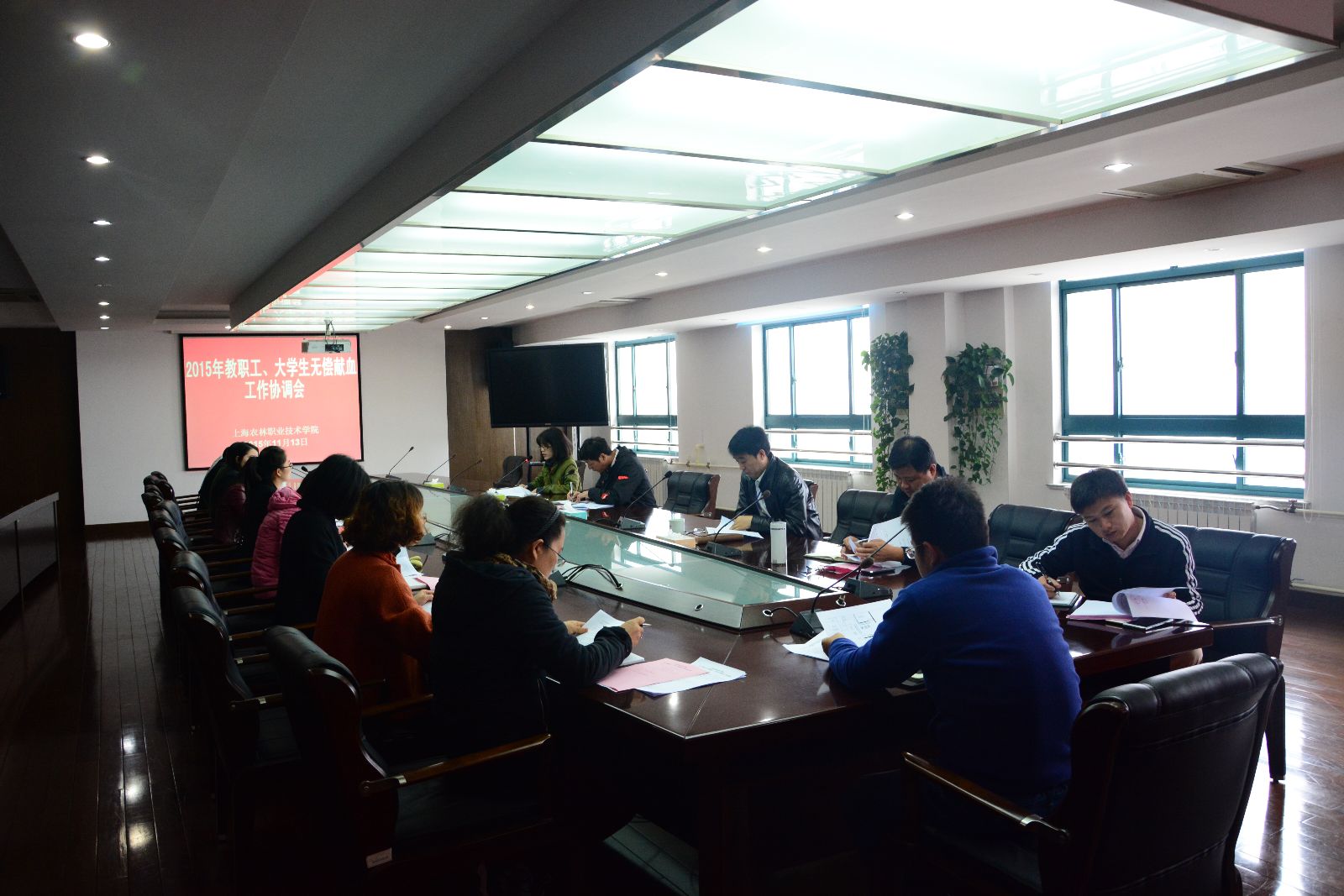 11月13日,2015年教职工、大学生无偿献血工作协调会在综合教学楼1101会议室召开。党委副书记、副院长俞锦禄参会,出席会议的其他领导有费国强、高功辉、相关职能部门负责人,各系学生工作负责人,14级专职辅导员等一同出席会议,院团委书记许昊主持协调会。