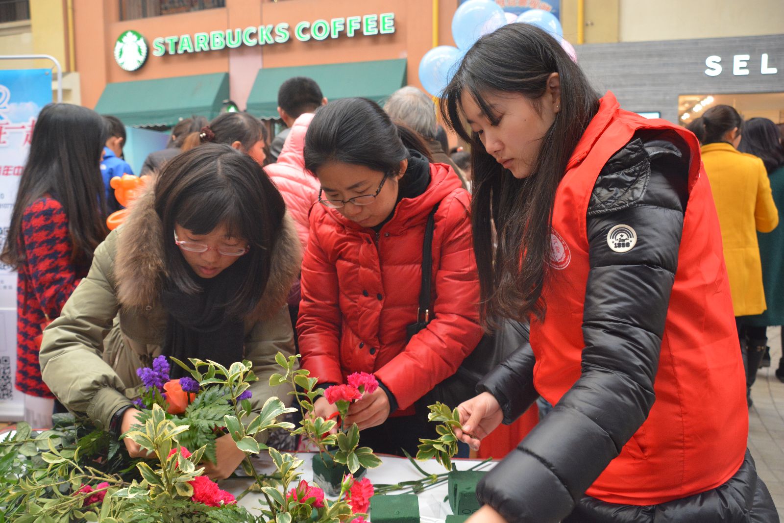 12月15日,松江青年中心风采展示活动在开元地中海商业广场举行,我院星雨插花社、宠物之家、大学生艺术团等学生社团应邀参加,并开展现场互动。