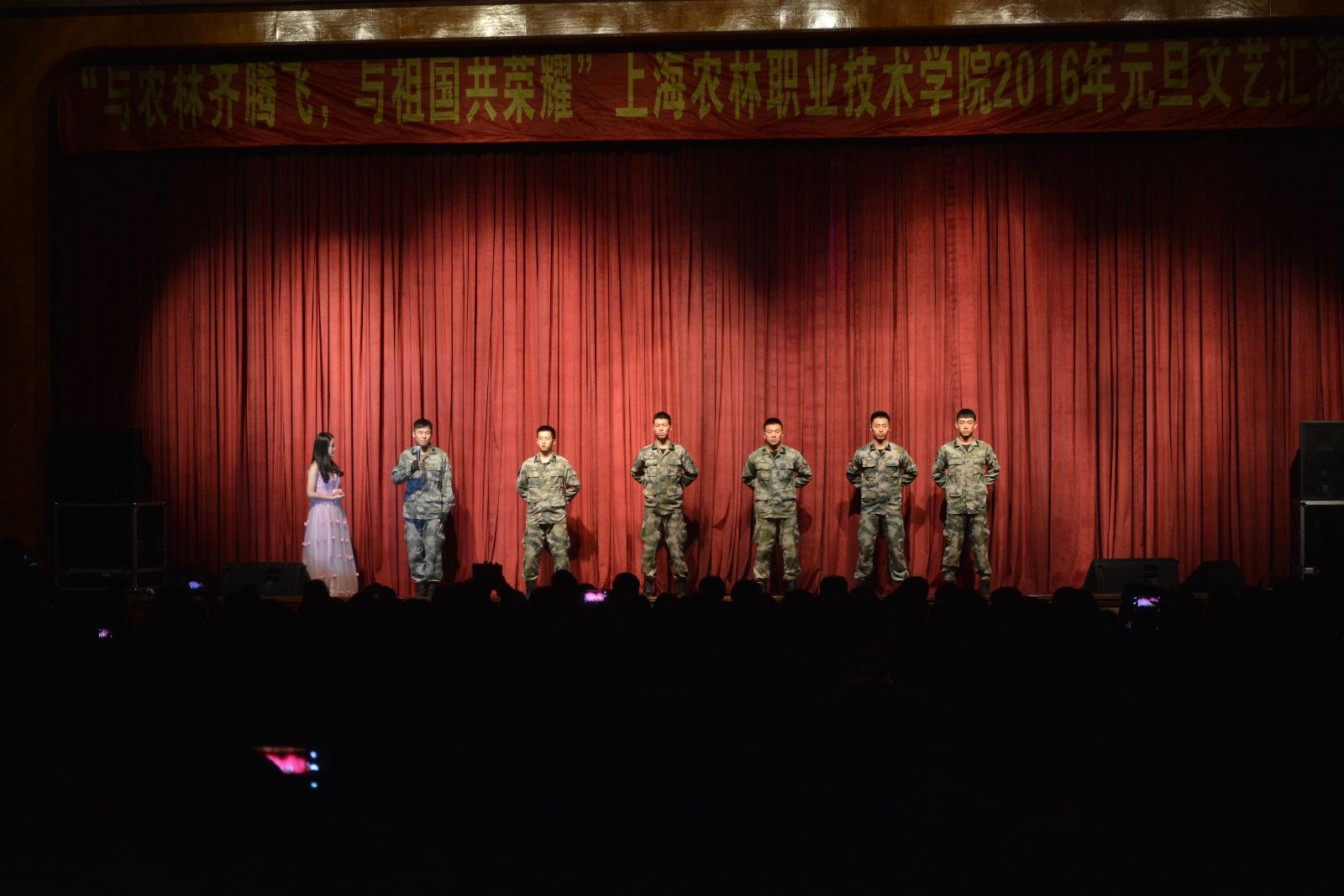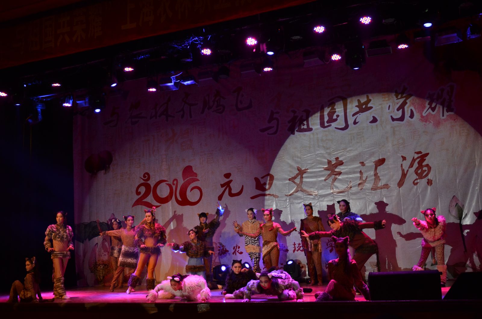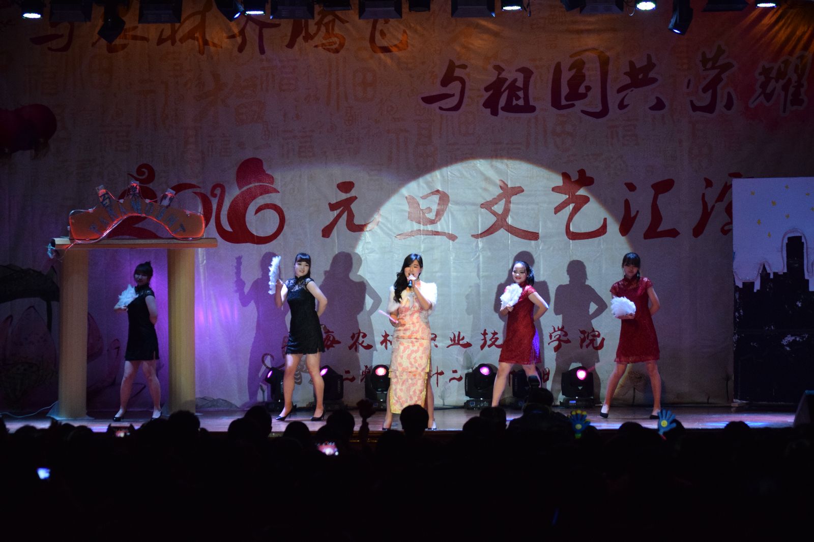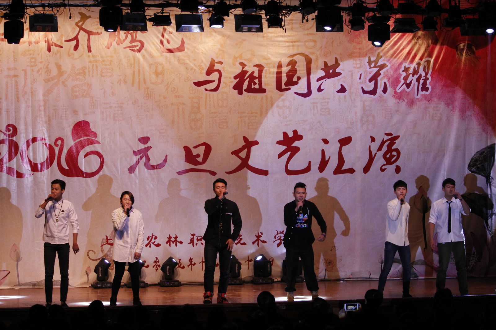 12月29日,由院团委主办的“与农林齐腾飞 与祖国共荣耀”2016年元旦文艺汇演在大礼堂举行。学院党政领导魏华、俞锦禄、高功辉、费国强以及相关职能处室负责人,各系学生工作负责人,团总支书记及学生代表等1000余人观摩了演出,共庆元旦佳节的到来。