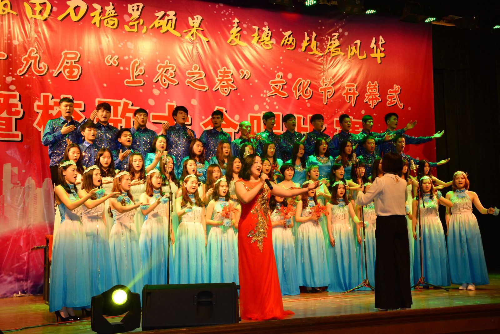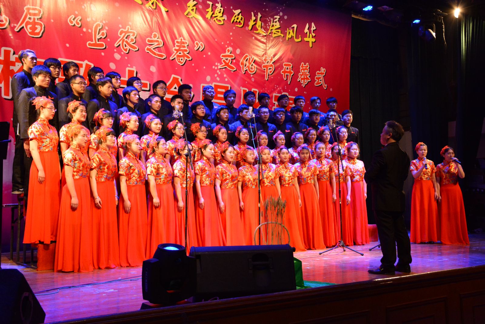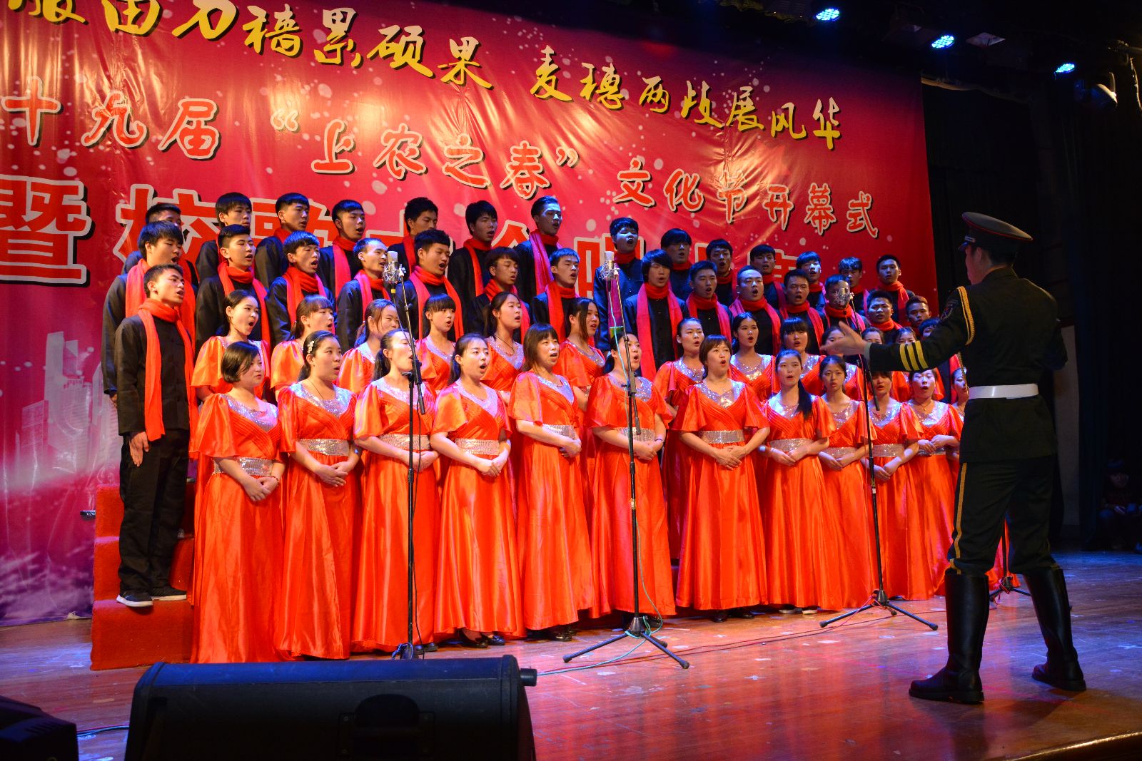 开幕式结束后,举行了校歌大合唱比赛。各系部以一首校歌及一首自选红歌做为参赛曲目。师生们着装整齐统一,以高昂的热情、嘹亮的歌声赢得了评委及现场观众的赞赏,展示了广大师生的凝聚力和向心力,同时也抒发了对祖国和学校的热爱之情。最终,农经系荣获第一名,园艺园林系和农生系荣获第二名,动科系和农信系荣获第三名。