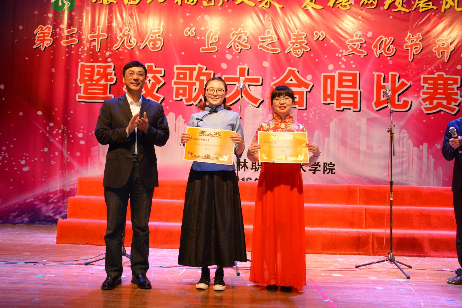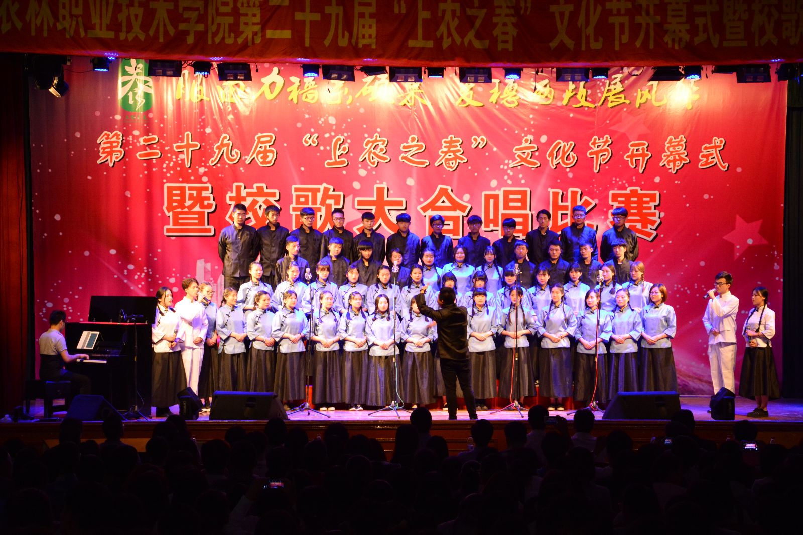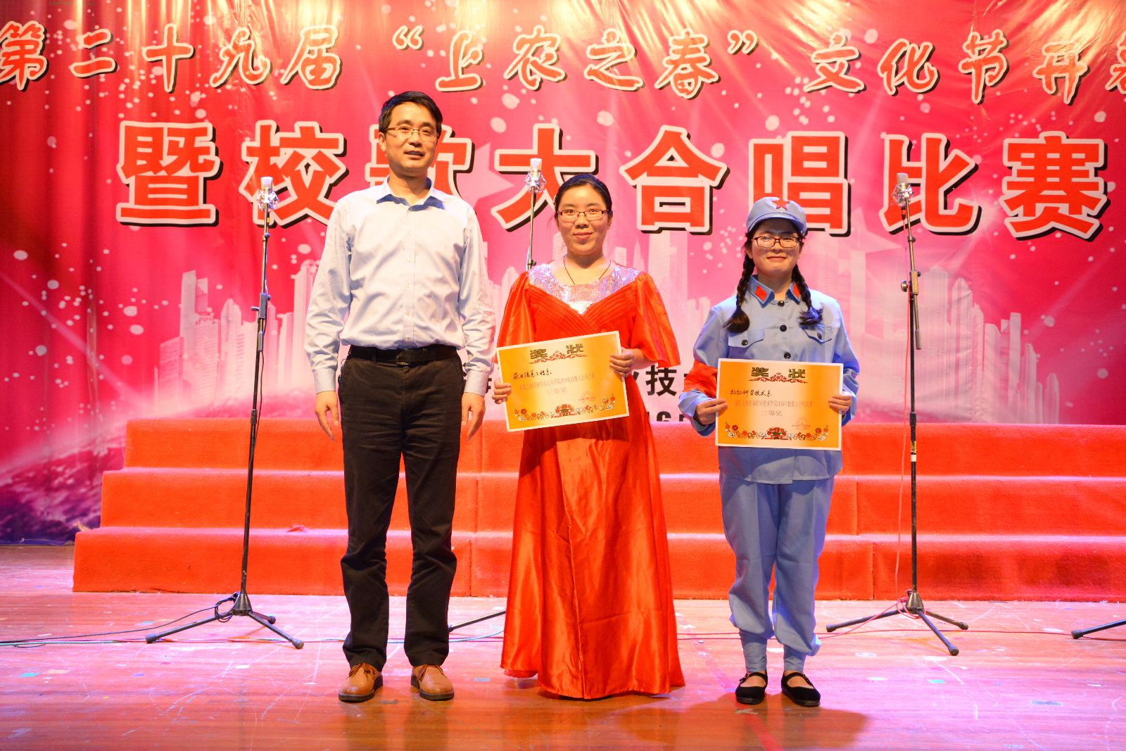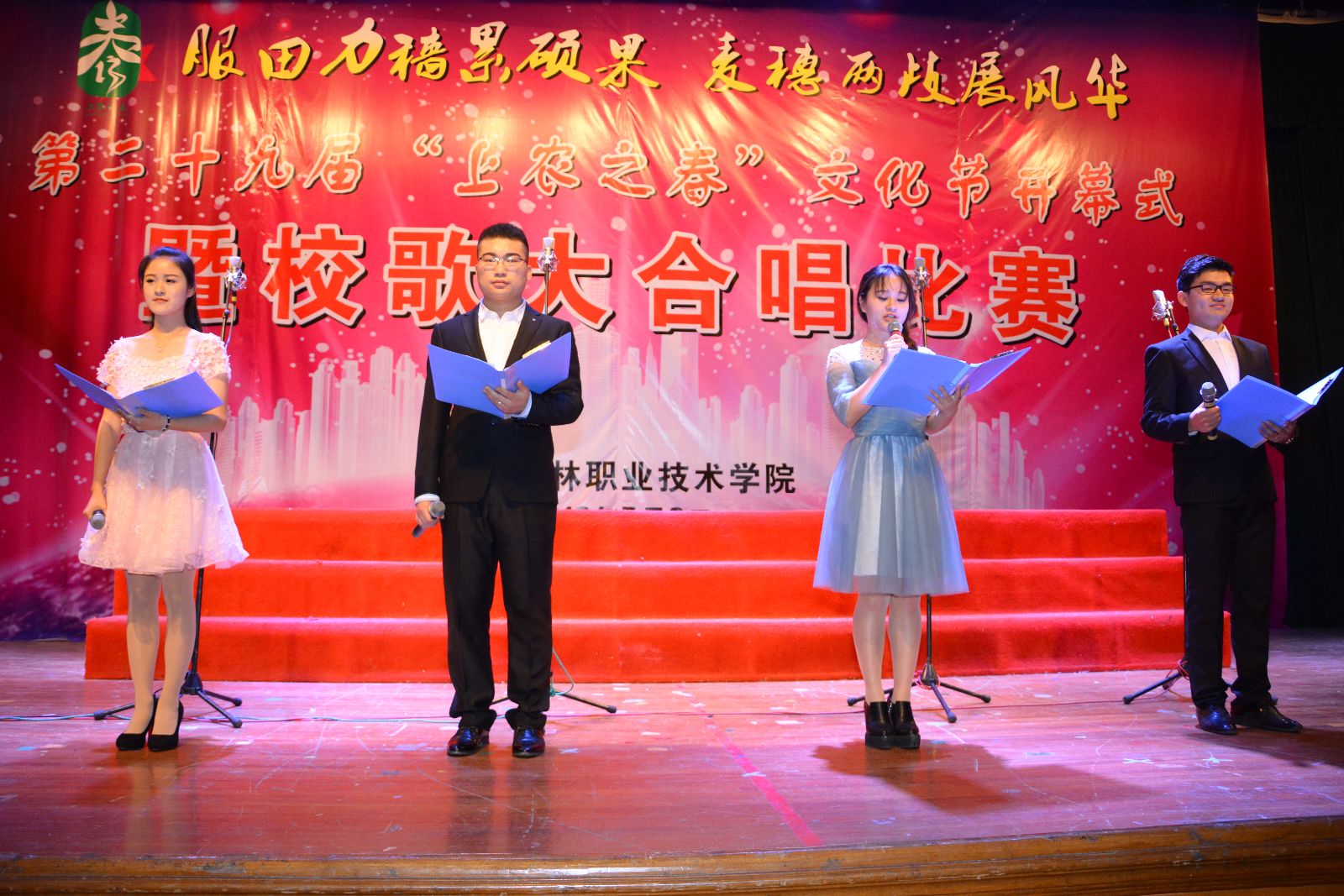 开幕式结束后,举行了校歌大合唱比赛。各系部以一首校歌及一首自选红歌做为参赛曲目。师生们着装整齐统一,以高昂的热情、嘹亮的歌声赢得了评委及现场观众的赞赏,展示了广大师生的凝聚力和向心力,同时也抒发了对祖国和学校的热爱之情。最终,农经系荣获第一名,园艺园林系和农生系荣获第二名,动科系和农信系荣获第三名。