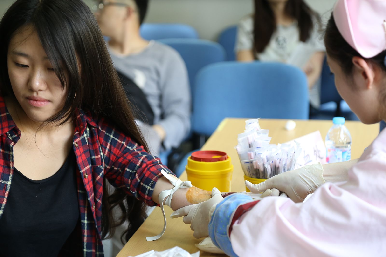 5月19日,我院30余名学生参加了由松江区卫生计生系统组织的造血干细胞捐献血检活动。