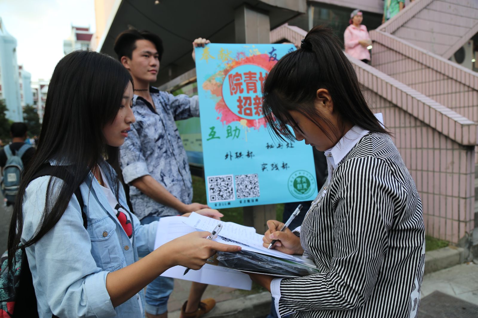 院团委、学联各部门负责同学通过不同形式向新生做了介绍,并进行了线上、线下招新活动。据不完全统计,共有1062人次、700余名2016级新生报名参加各部门。各系部团学招新工作也将于本周完成。