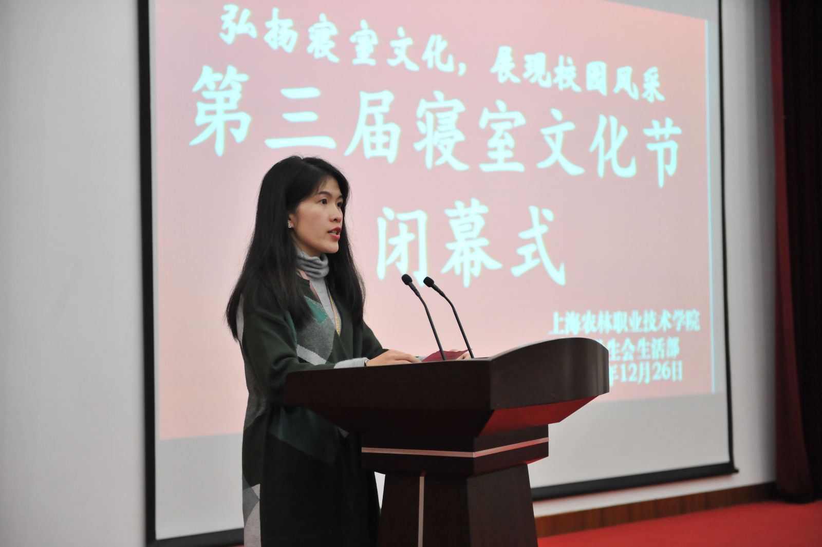 许昊致闭幕词,她表示寝室文化节活动不仅为同学们创造了活跃大脑、愉悦心情的空间,也为大家提供了施展才华、张扬个性的舞台,丰富了同学们的课余文化生活,深化了寝室文化生活内涵,增强了同学们之间的团结协作精神。最后许昊宣布第三届寝室文化节闭幕。