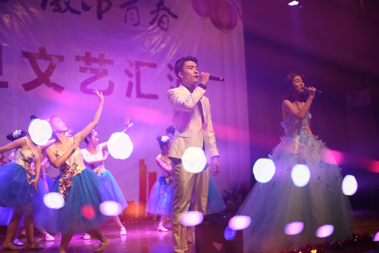 色彩斑斓的开场灯光秀让所有观众享受了一次视觉盛宴,现场气氛热烈,掌声雷动,场下座无虚席。晚会在热情奔放、大气磅礴的开场舞《盛世花开》中拉开序幕,女声四重唱《最初的梦想》、民乐合奏《极乐净土》、现代舞《Sinbad and style》、相声《这叫国际化》等节目用激情四射的热情凸显出以青春活泼为主旋律的青年文化的勃勃生机;集体诵读《长征之路·精神脊梁》弘扬了伟大长征精神,激励和鼓舞广大青年发愤图强、奋发有为;从部队退伍的10位兵哥、兵姐带来的军旅表演《精彩军营》充分展示了他们过硬的军事素养和青年学生热爱祖国投笔从戎的赤胆忠心,更是将现场的气氛推向高潮。文艺汇演最后在歌伴舞《民生》的精彩表演中落下帷幕。