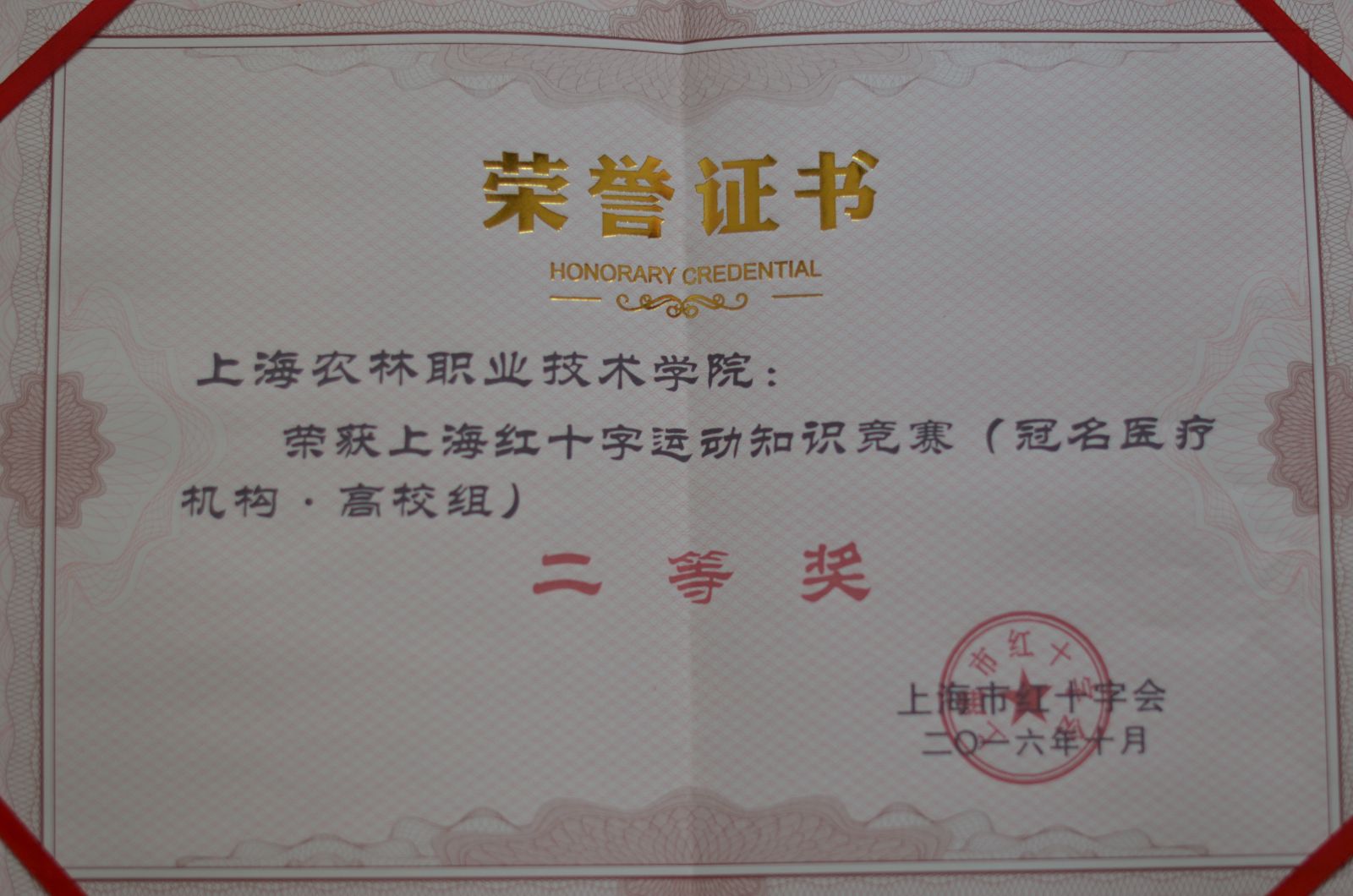 为贯彻落实《中国红十字事业发展2016-2020年规划》要求,在全社会广泛传播红十字运动基本知识,上海市红十字会于2016年9月8日至10月7日在全市开展了红十字运动基本知识竞赛。我院积极参与,获得上海市红十字运动知识竞赛(冠名医疗机构•高校组)二等奖。