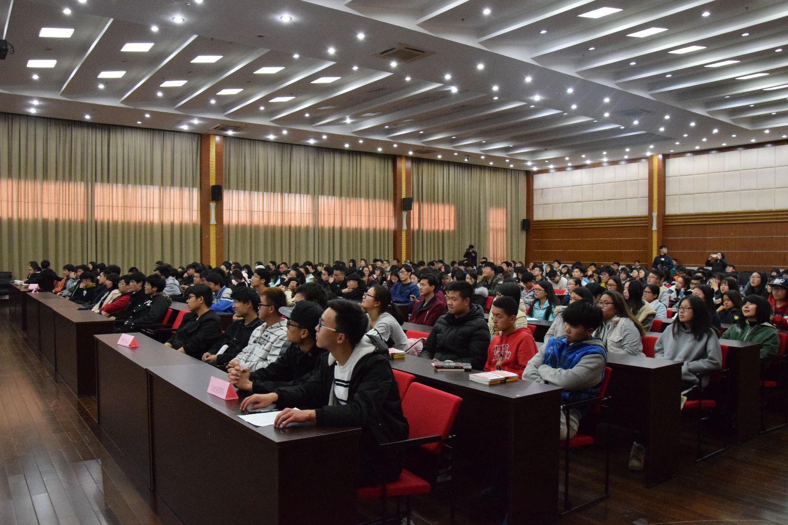 谢伦波讲师采用故事演讲的形式,用幽默风趣和通俗易懂的语言为我们讲述了《孔子家语》中一个个鲜活的故事,多次向同学们解释什么是生活、人生、态度,并通过拆解中国汉字“态度”,领悟“心大度一点”的意义,拆解汉字“心态”,领悟“心比心大一点”的意义,教会同学们学会宽恕和分享。谢老师还寄语广大同学遇到困难要积极乐观的面对,培养健康的兴趣爱好,寻找人生的乐趣;能够传承国学,学以致用,找到自己的人生态度和目标。