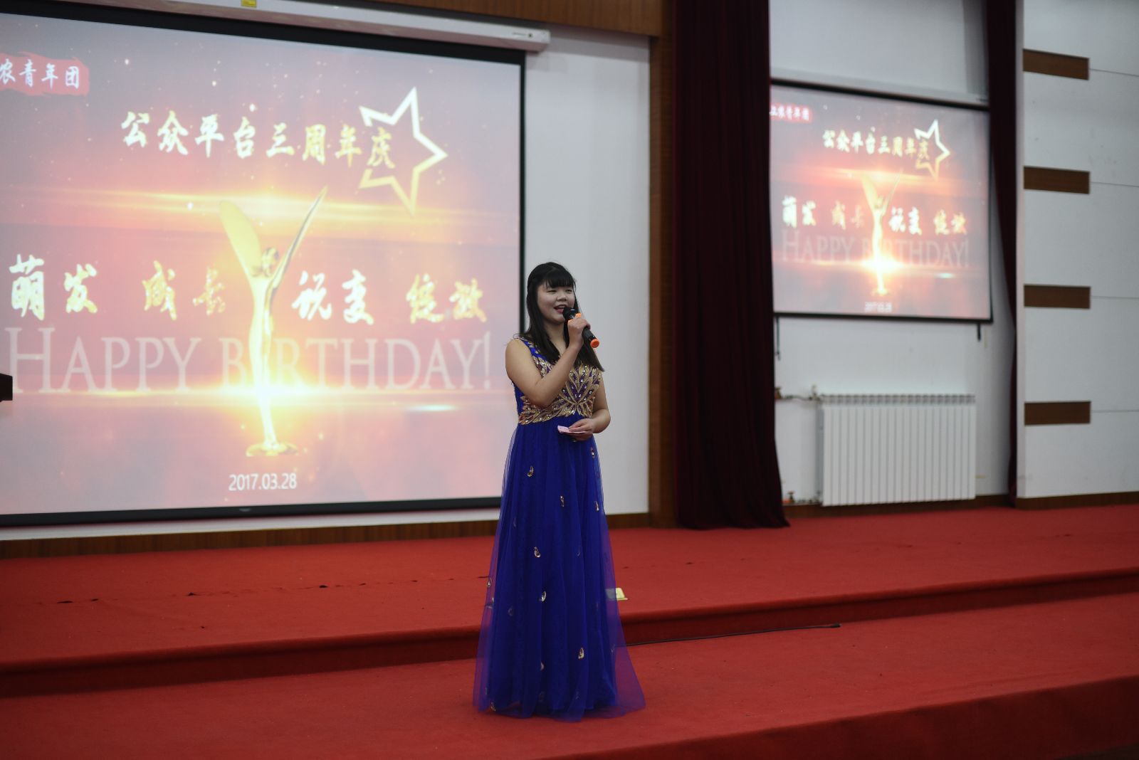 3月28日,“萌芽、成长、蜕变、绽放”上农青年团微信公众平台三周年纪念活动在综合楼205报告厅举行,学院党委副书记、副院长俞锦禄出席,宣传处处长樊清誉、学生处处长刘秀云、团委书记许昊、各系团总支书记和学生代表等200余人参加了纪念活动,共同庆祝上农青年团3周年生日快乐。