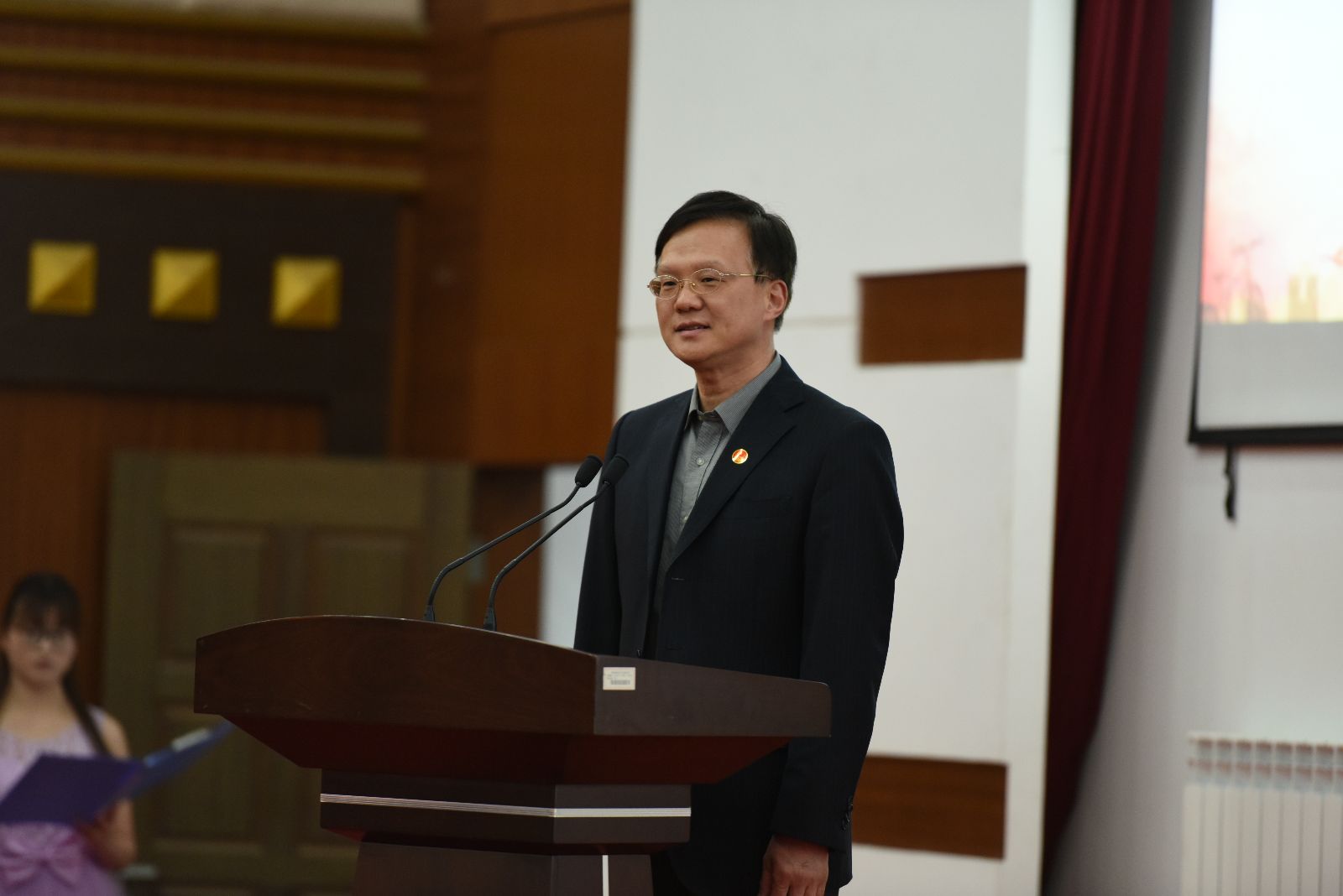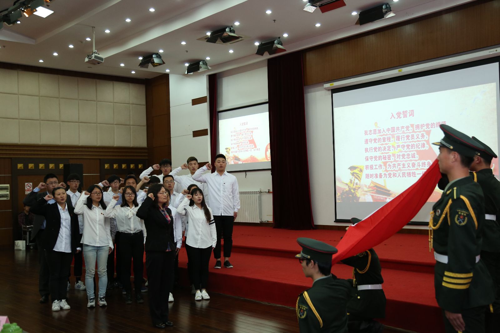 部分教师党员、学生党员在领誓人党委宣传处、统战处处长樊清誉老师的带领下,面对鲜红的党旗,重温入党誓词。大家高举右手,紧握右拳,再次庄严地宣读入党宣誓,宣誓铿锵有力,慷慨激昂。