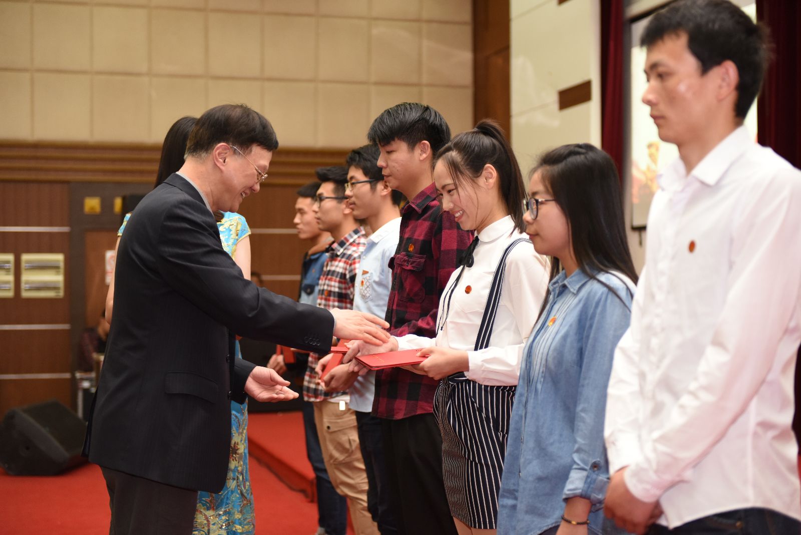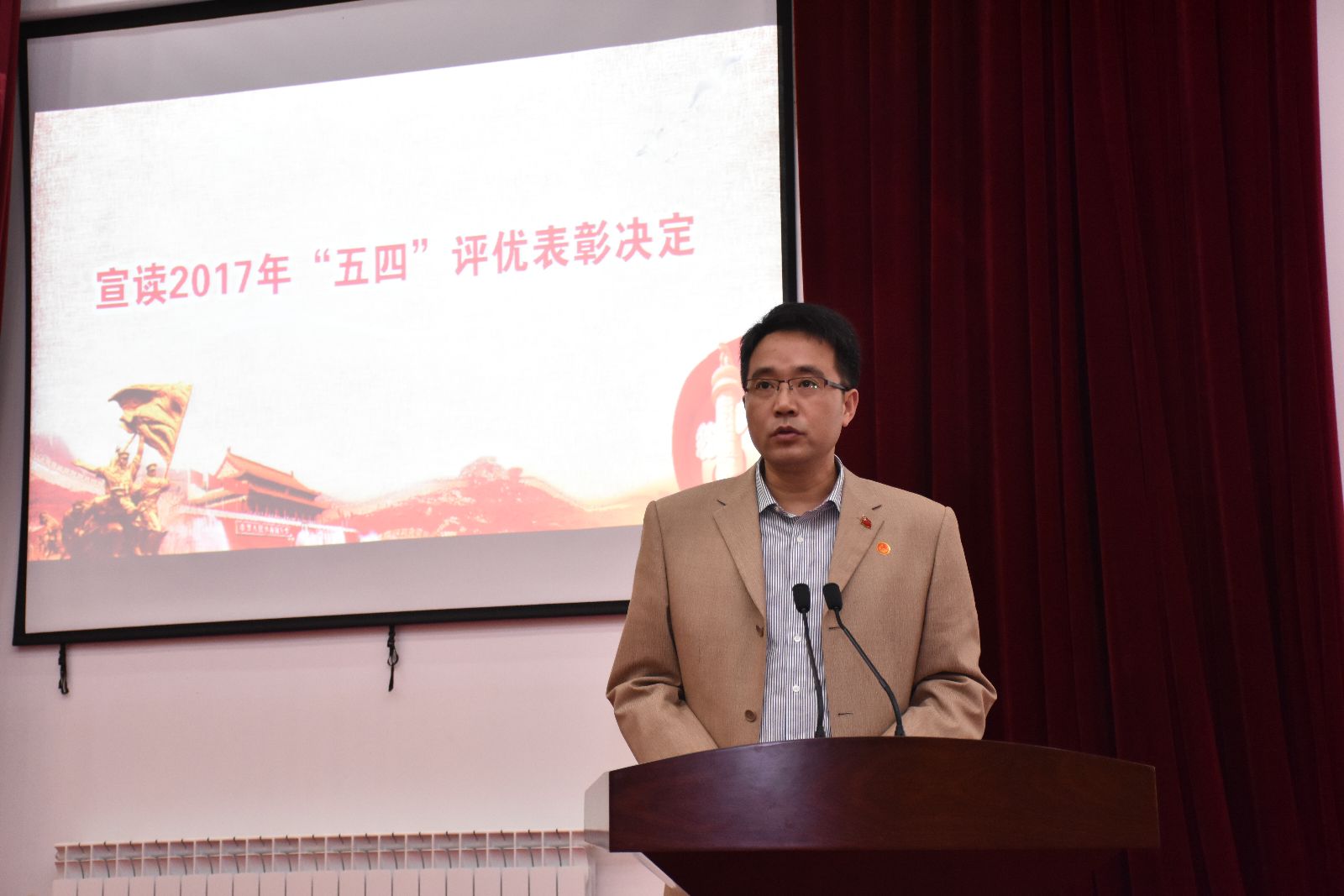 协管学生工作领导、财务处处长费国强宣读《共青团上海农林职业技术学院委员会、共青团上海市农业学校委员会关于2017年“五四”评优表彰的决定》,宋璐遥等170人荣获“优秀团干部”称号,焦斌等276人荣获“优秀团员”称号,徐慧明等25人荣获“最美团支书”称号,动医151班团支部等15个团支部荣获“先进团支部”称号。魏华、俞锦禄、仲肇森、谢锦平现场对获奖集体和个人进行了颁奖。