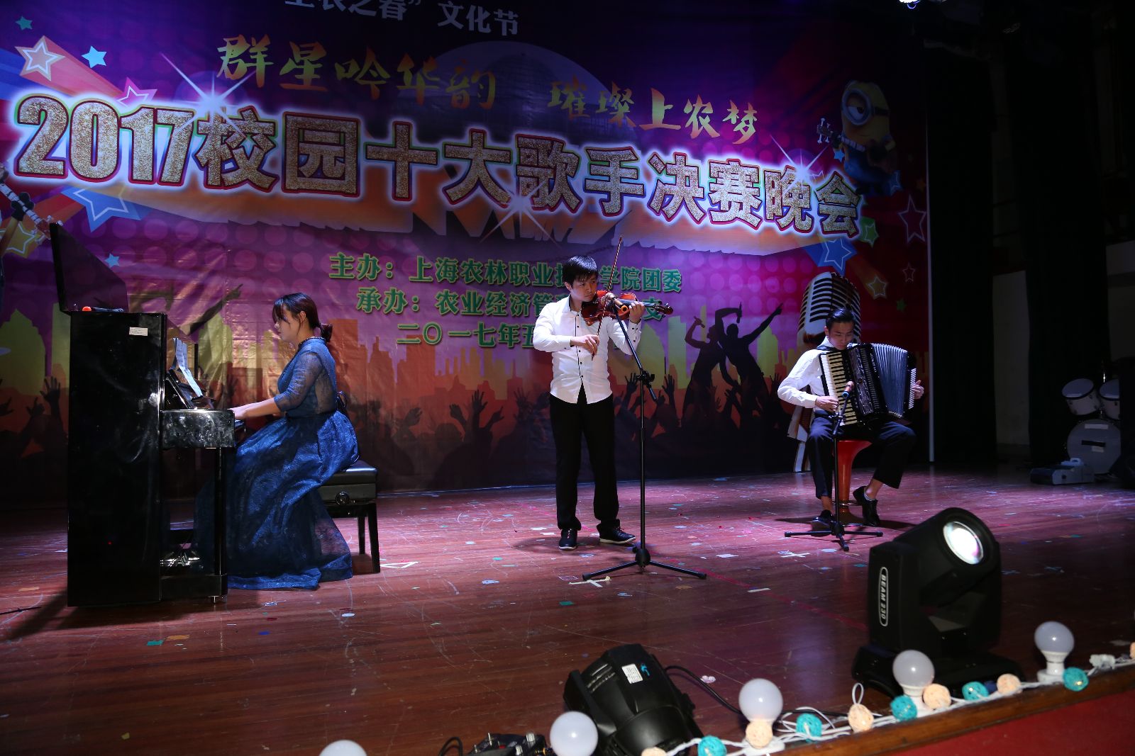 5月11日,由院团委主办,农经系承办的“群星吟华韵,璀璨上农梦”2017校园十大歌手总决赛在学院大礼堂圆满落幕。学院党委副书记、副院长俞锦禄出席,相关职能部门负责人,文化节组委会成员及师生代表等1000余人共同观摩了比赛。