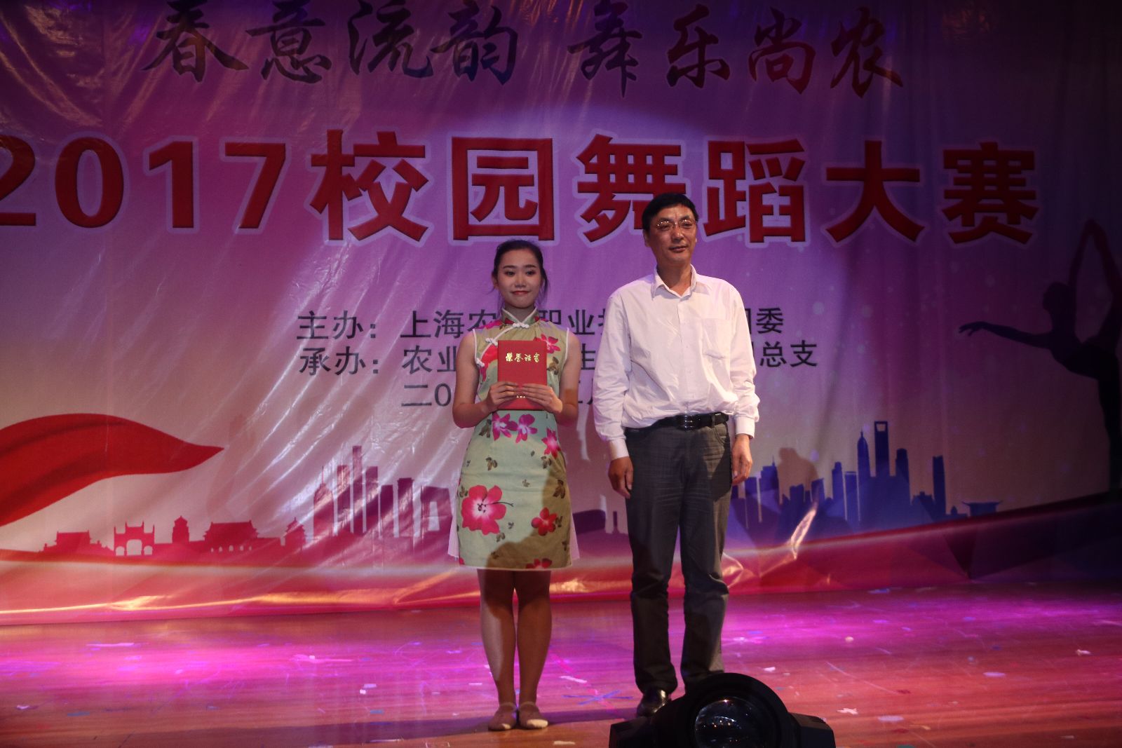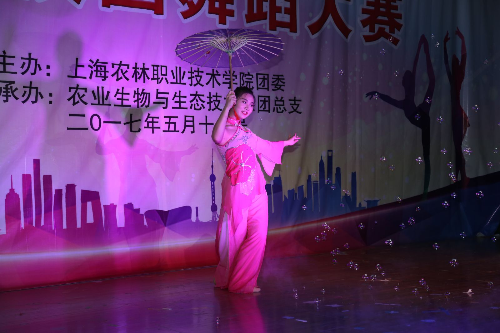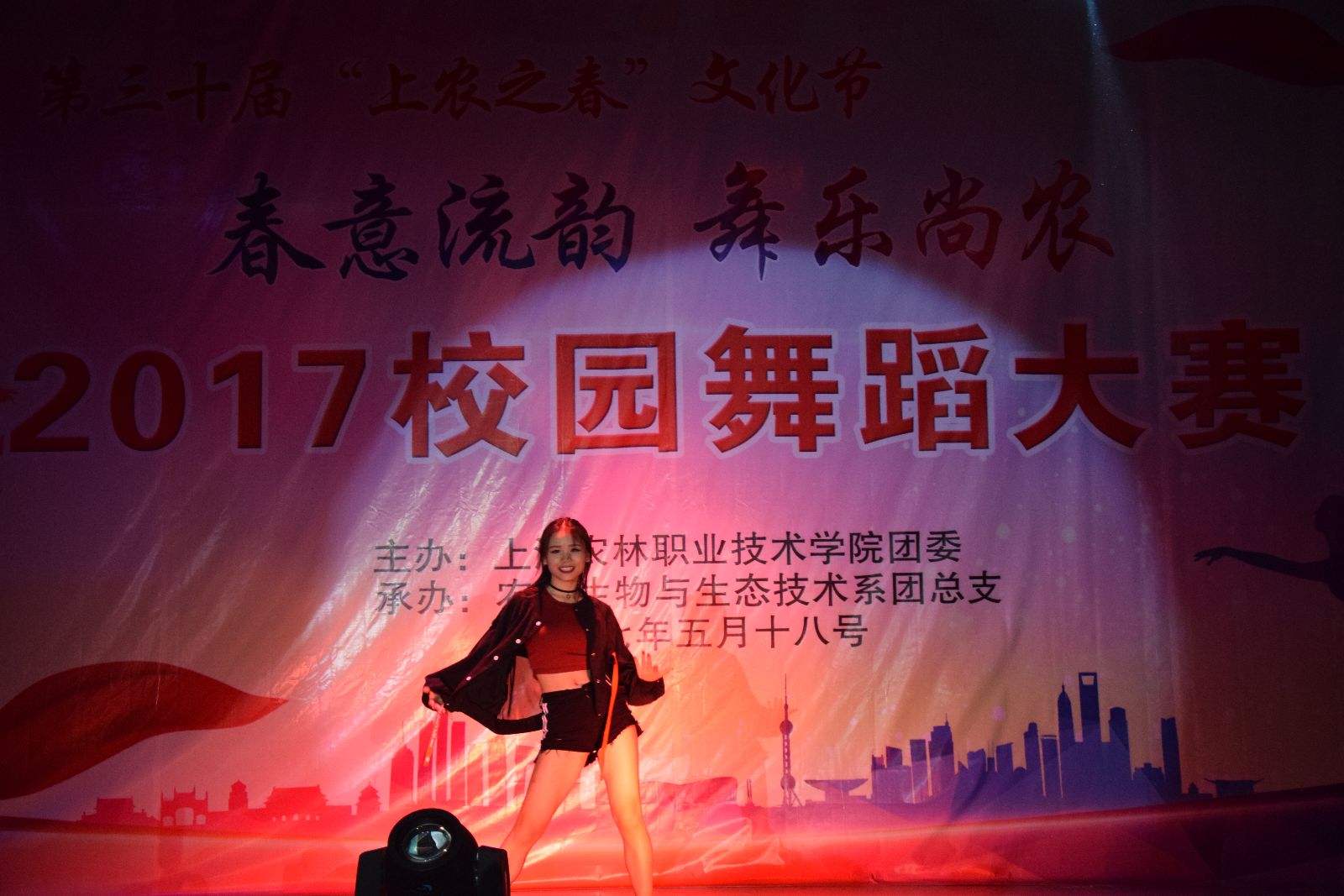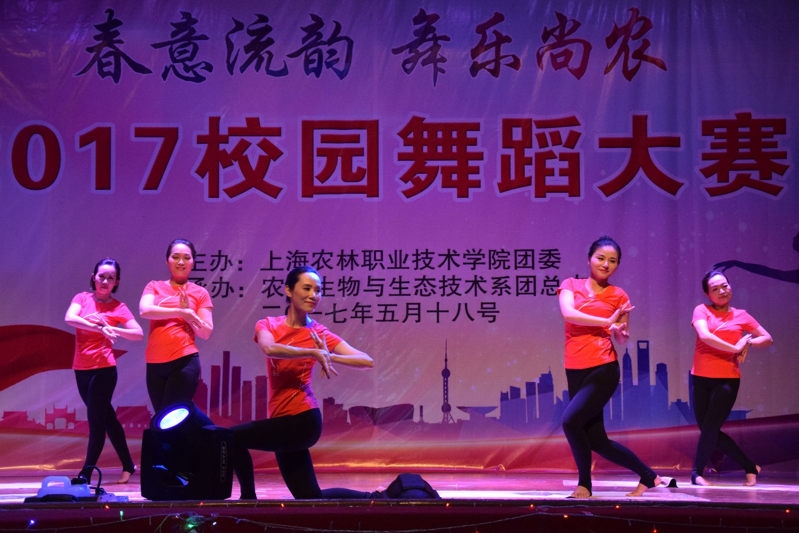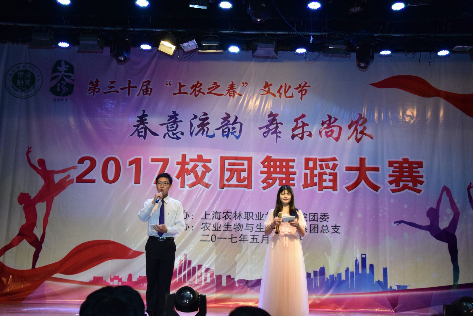 2017年5月18日,由院团委主办,农生系承办的“春意流韵,舞乐尚农”2017年校园舞蹈大赛在学院大礼堂举行。党委副书记、副院长俞锦禄,工会主席高功辉出席,相关部门负责人,本届文化节组委员成员及师生代表等1000余人观看了比赛。