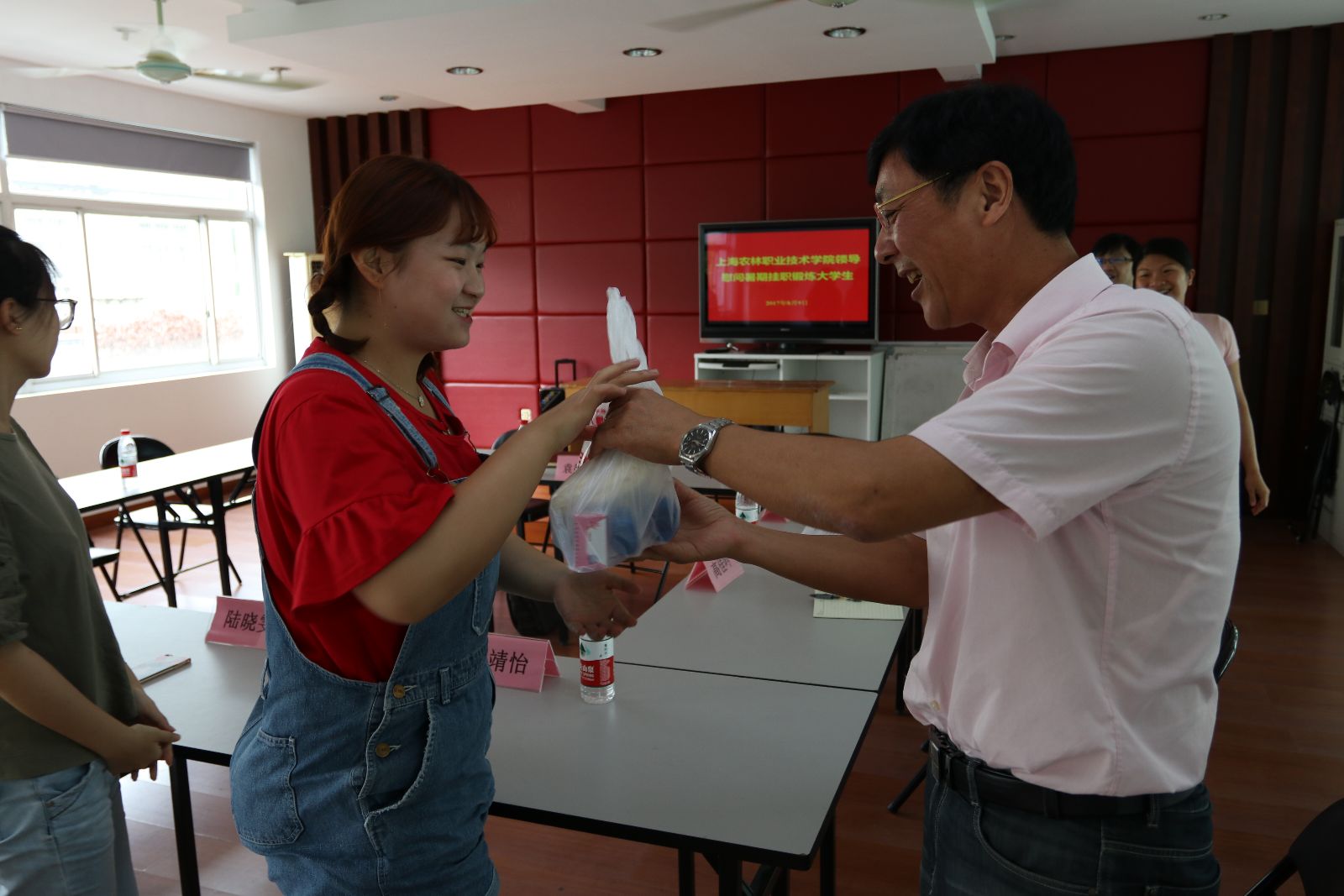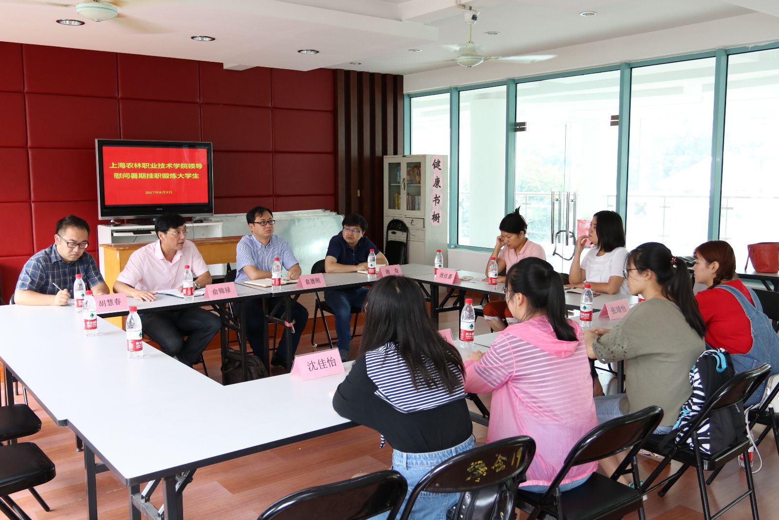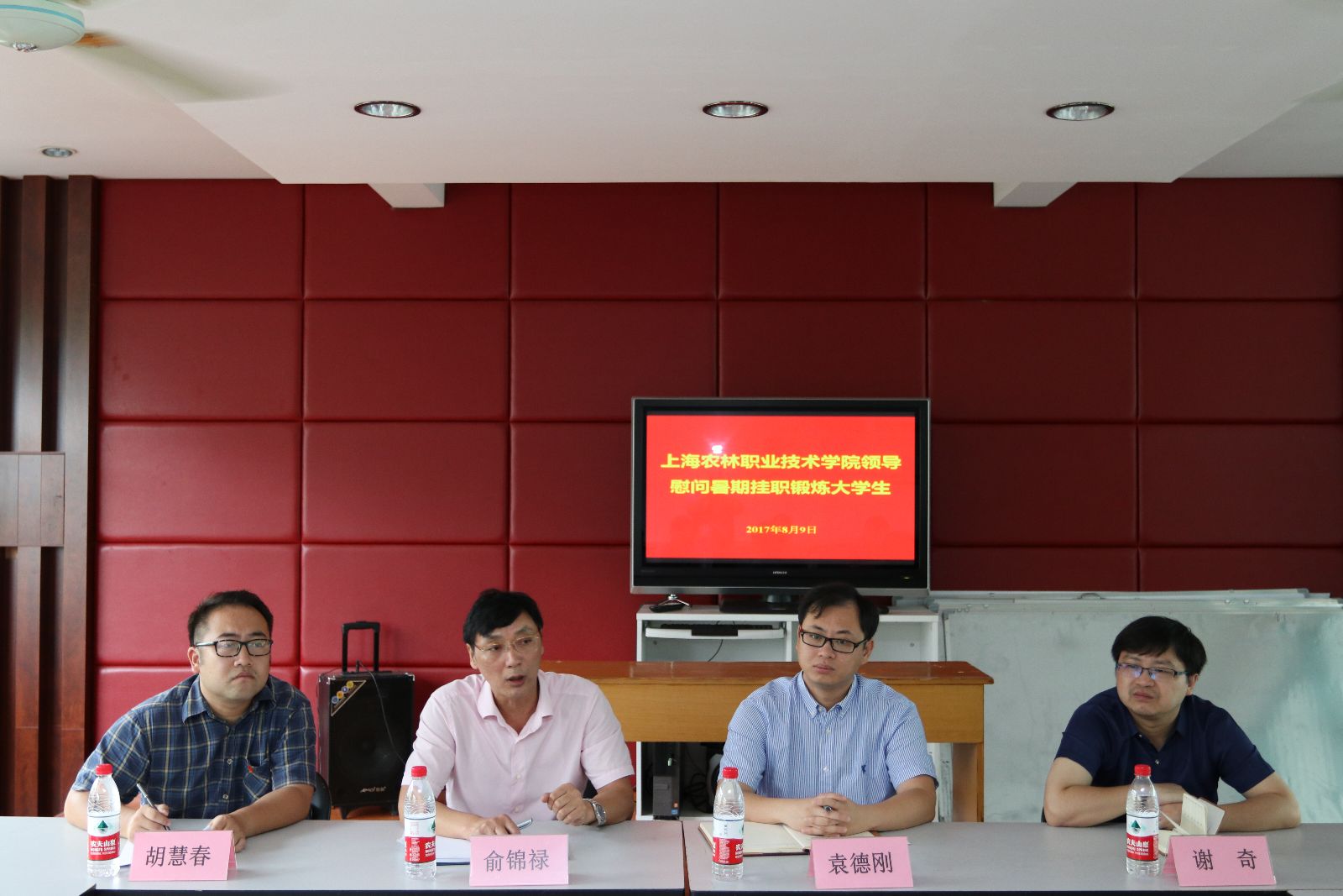 8月9日,学院党委副书记、副院长俞锦禄来到松江绿庭苑居委会,亲切慰问了我院在松江区挂职的4位大学生,松江团区委副书记袁德刚、团区委组织部负责人和学院团委负责人一同参加了慰问。