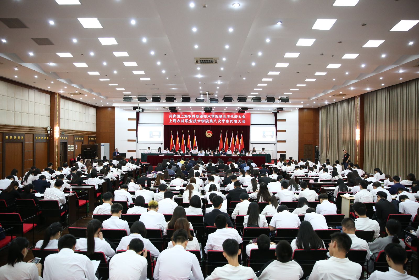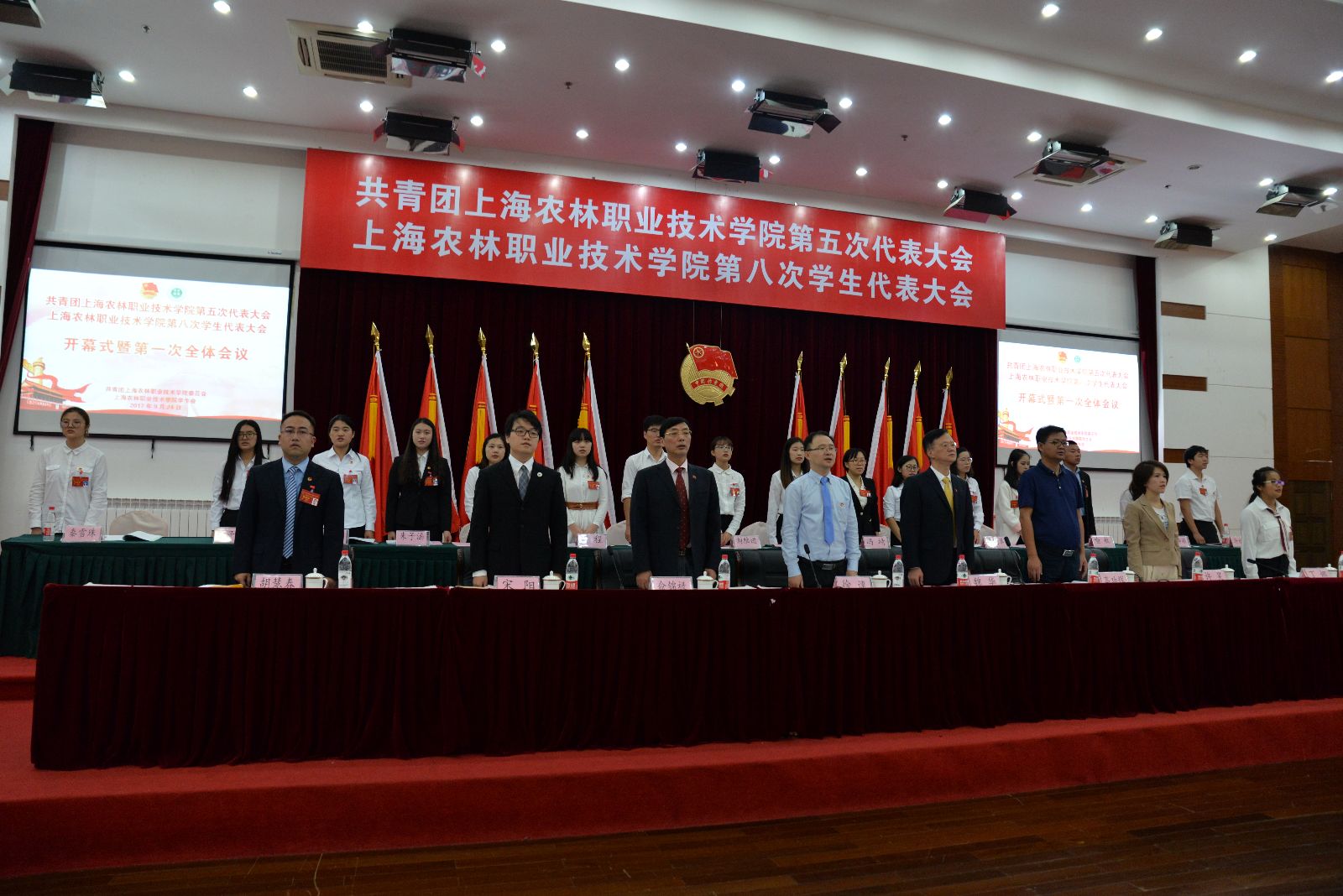 在圆满完成各项议程后,在高昂的团歌声中,共青团上海农林职业技术学院第五次代表大会、上海农林职业技术学院第八次学生代表大会圆满落下帷幕。