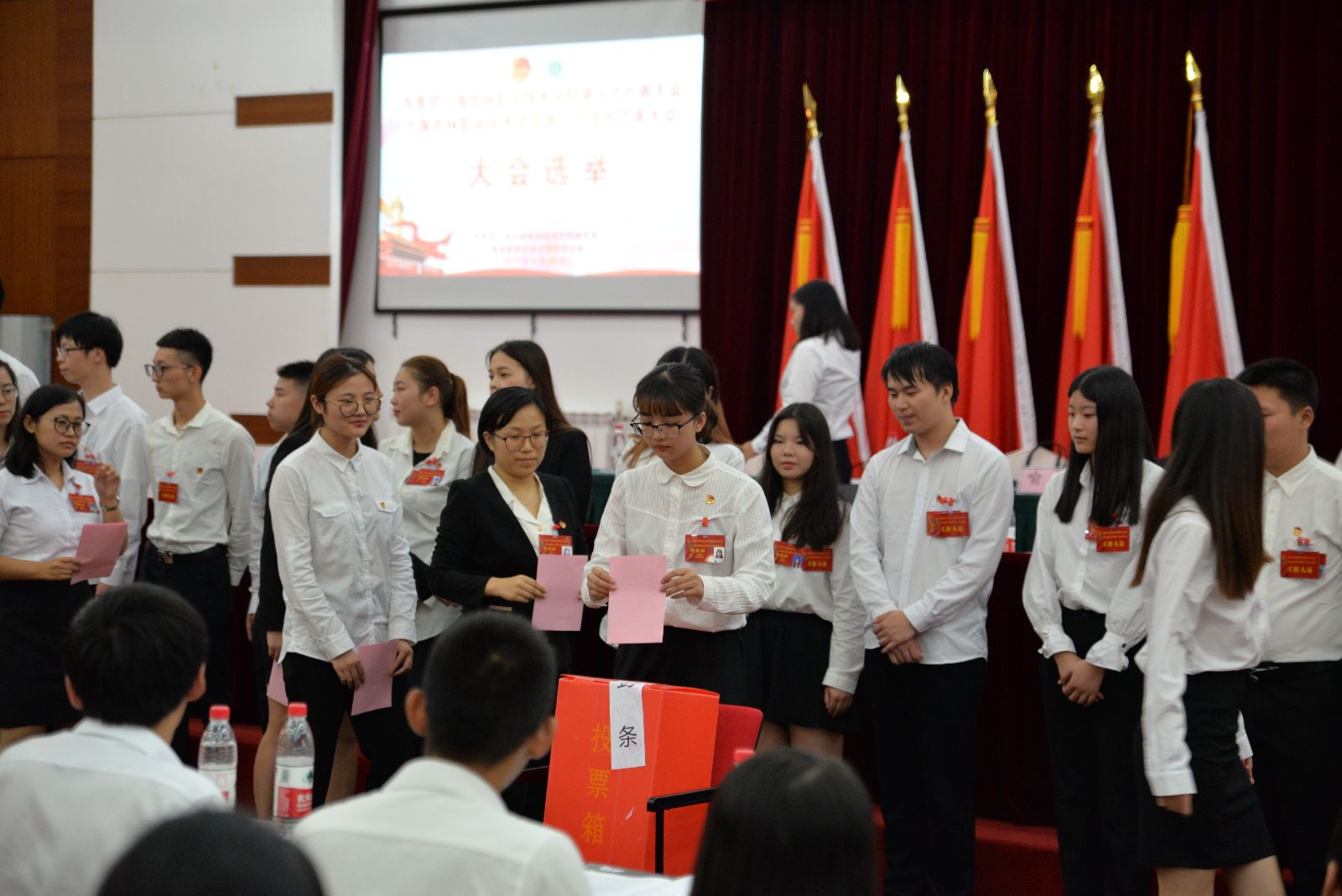 当天下午,大会以无记名投票方式,选举产生了由冯靖、刘雅姗、李莹、邱晓梁、张楠、胡慧春、秦雪珠、盛少帆、康佳乐组成的共青团上海农林职业技术学院第五届委员会和朱丹、闫广文、杨泽东、吴嘉源、陈晓倩、罗松、侯溢、秦雪珠、倪楠楠、屠星辰、翟颖培组成的上海农林职业技术学院第八届学生委员会。