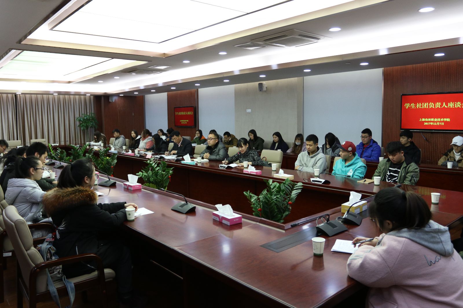 12月7日,在第一会议室,学院召开学生社团负责人交流座谈会。党委副书记、副院长俞锦禄出席会议并讲话,院团委负责人、院团委社团联合会以及各社团负责人参加了座谈。