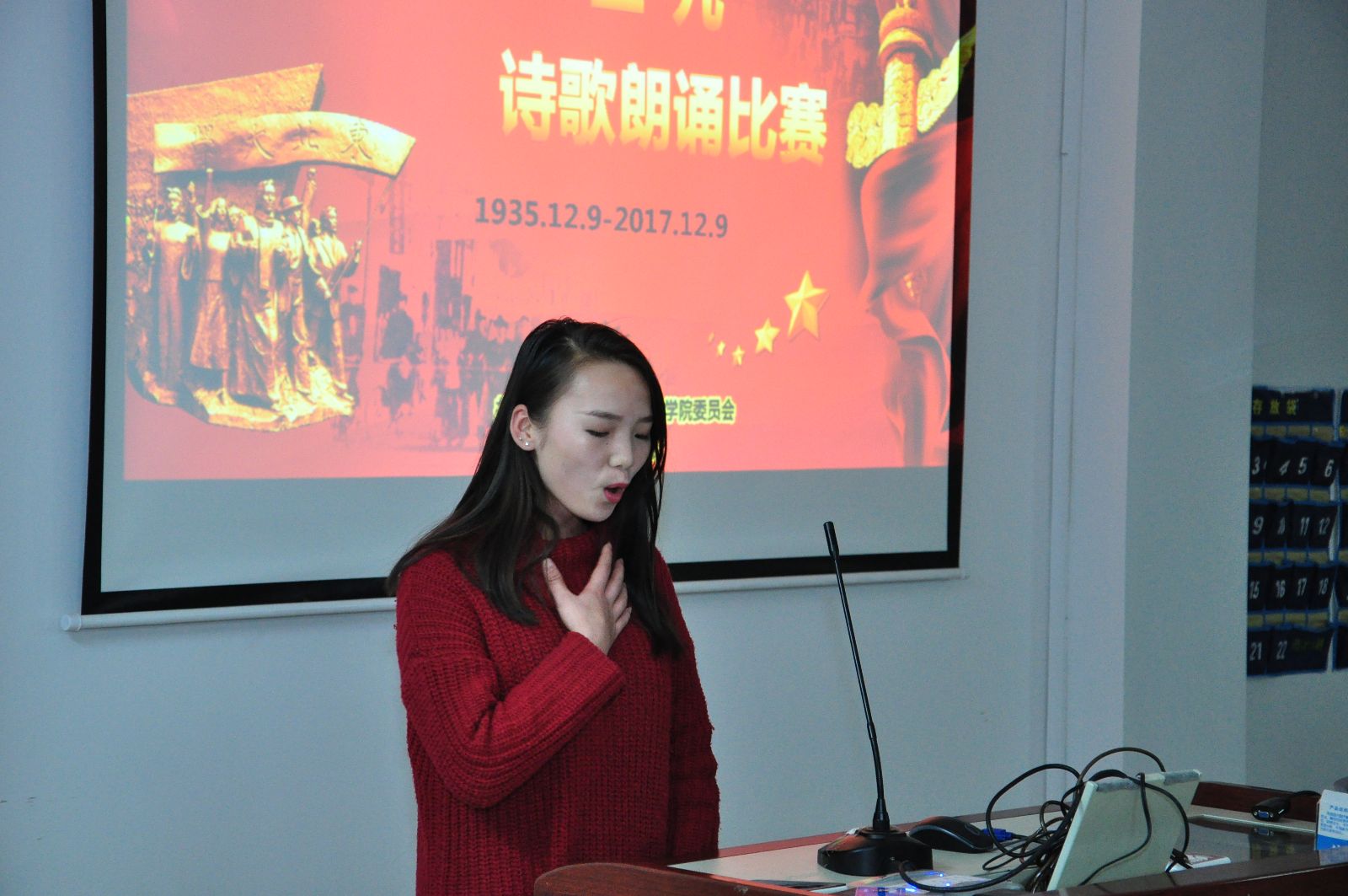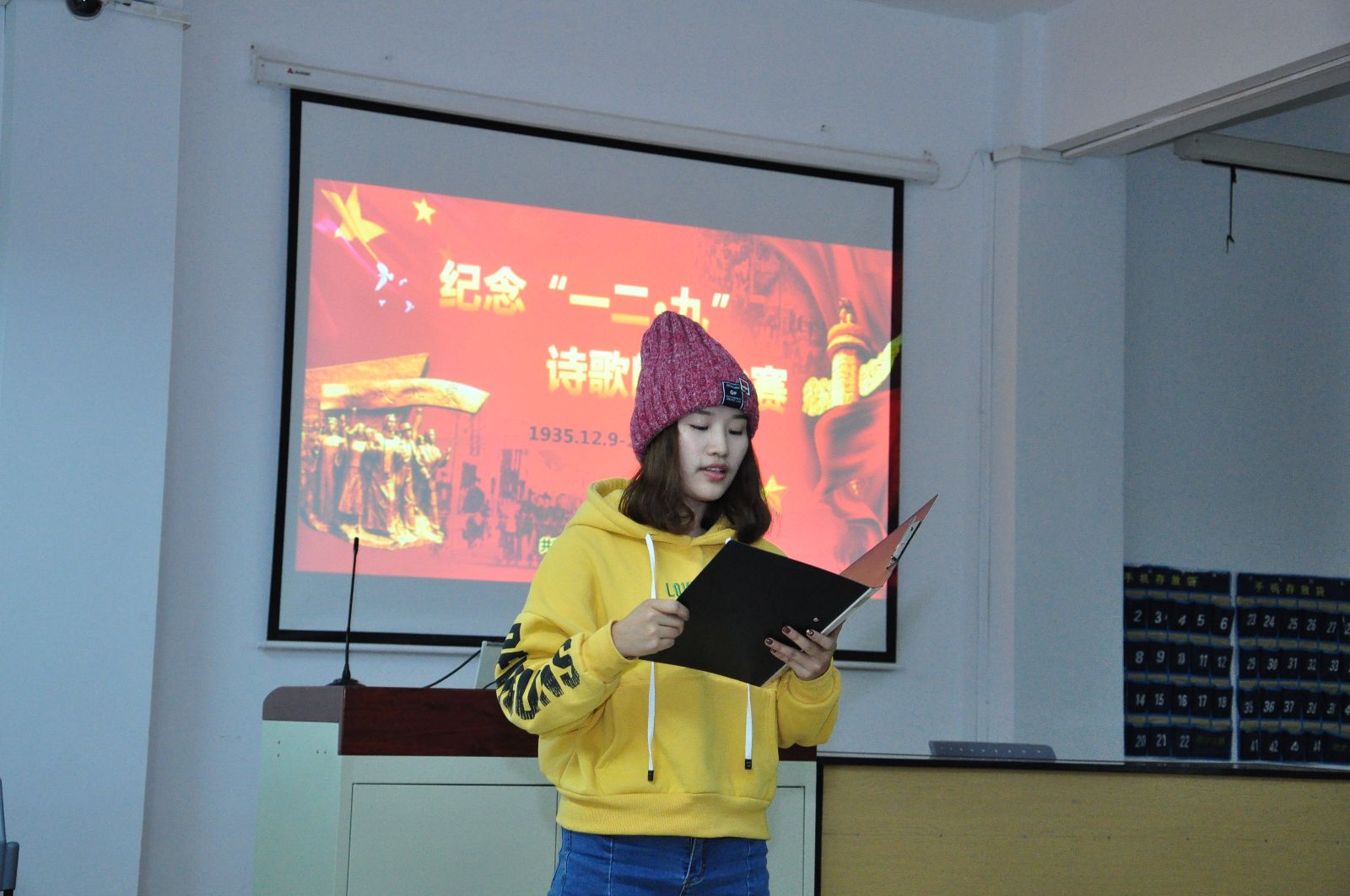 12月7日,“铭记恢宏历史,共抒爱国情怀”纪念“12.9”学生爱国运动82周年诗歌朗诵比赛在一教202举行,院团委、各系团总支、学生会负责人以及学生代表等80余人参加了比赛。
