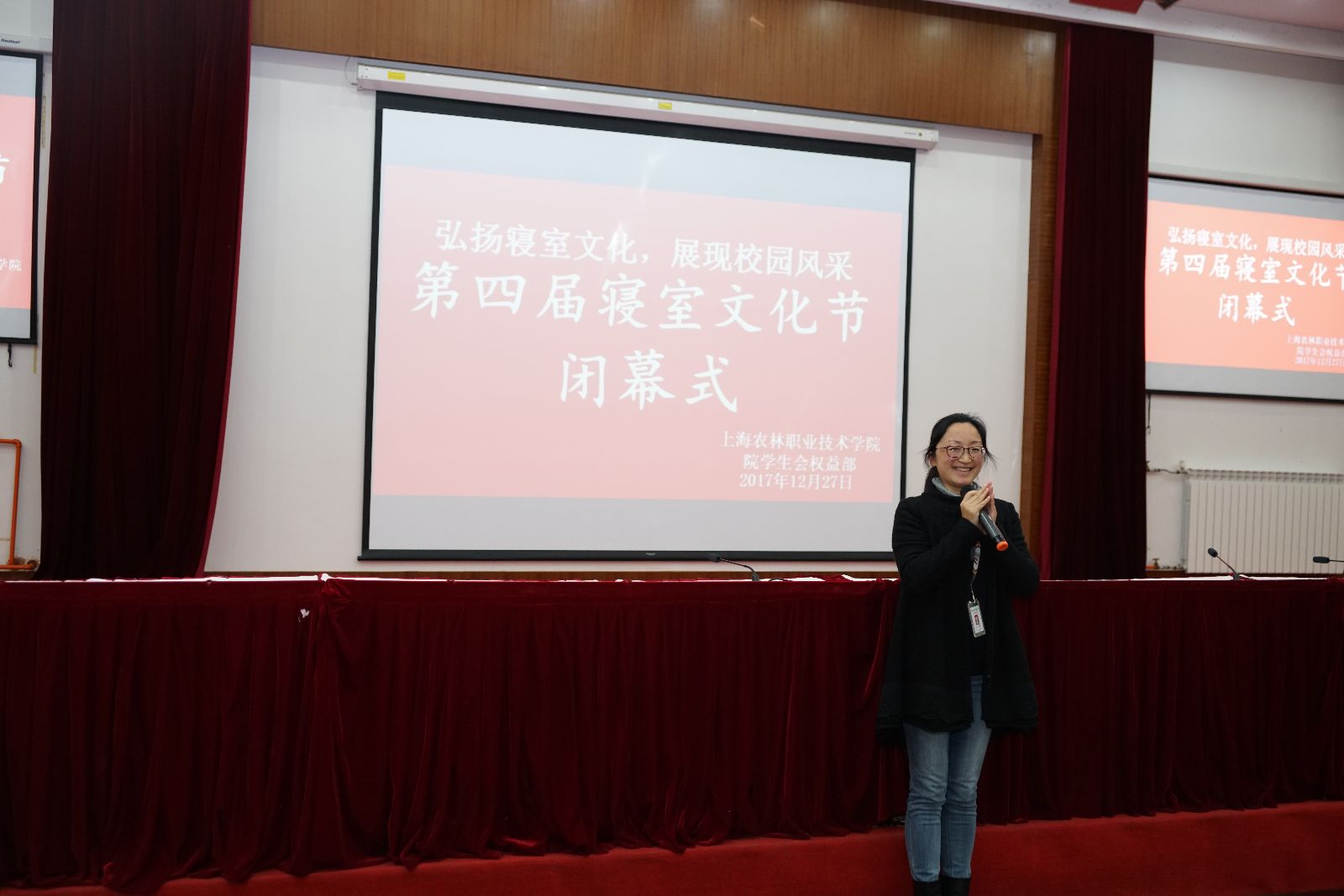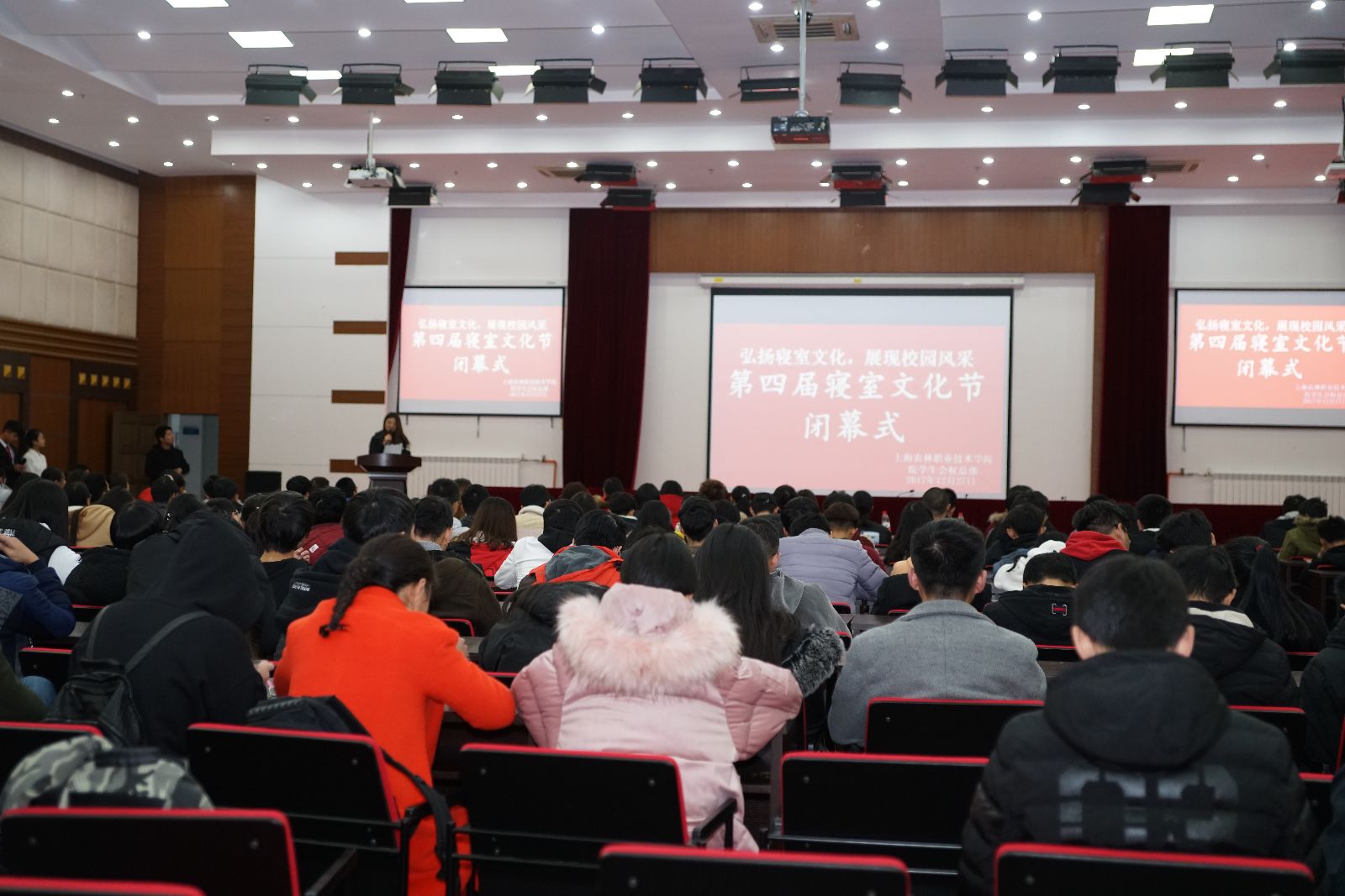 12月27日,由院团委、学生会主办的第四届寝室文化节闭幕式暨颁奖典礼在205报告厅举行。党委学工处、学生处处长沈悦,团委、各系团总支、宿管代表,获奖学生及学生代表共200余人参加。