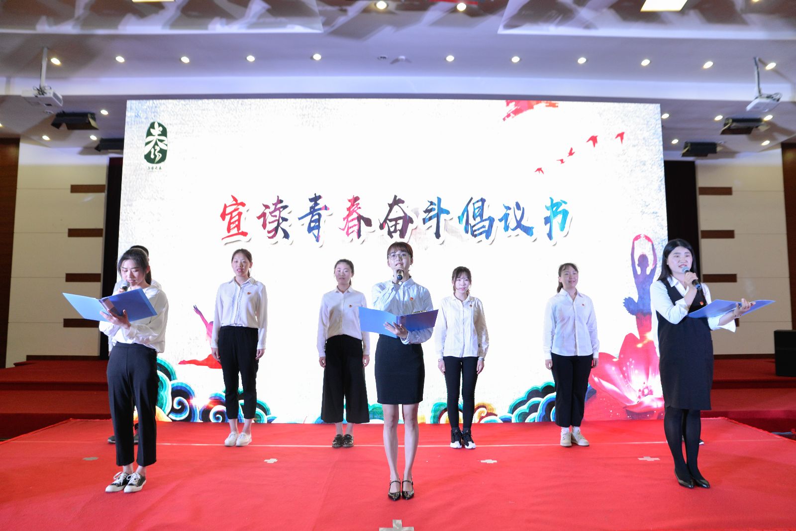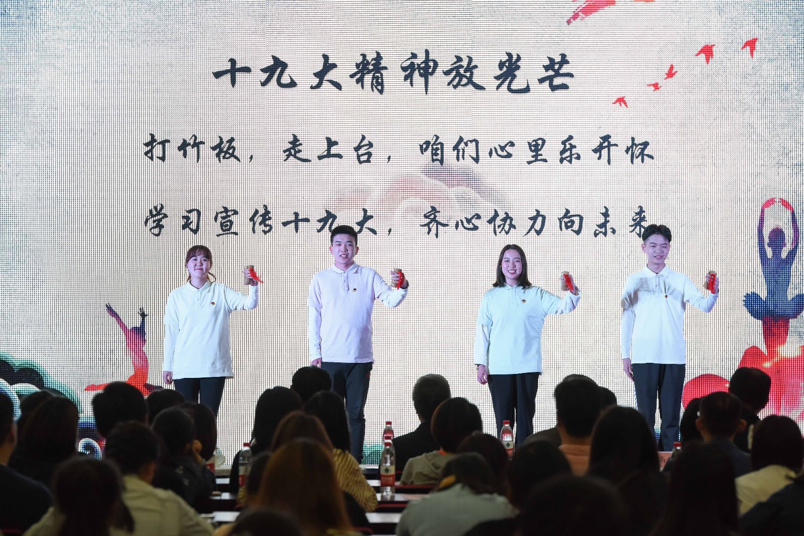 开幕式上还举行了“五四”表彰,李佳玺等177人荣获“优秀团干部”称号、陈艺心等278人荣获“优秀团员”称号、王肖燊等30人荣获“最美团支书”称号、动医171班团支部等18个团支部荣获“活力团支部”称号、软件172班团支部等19个团支部荣获“先进团支部”称号,谢锦平、张佳敏现场对获奖集体和个人进行了颁奖。现场通过青春访谈的形式,邀请到上海市优秀团员获得者刘雅姗、学院轨交志愿团队负责人李娜、献血标兵赵文静现场分享了自己关于青春理想,青春活力,青春奋斗的经历与感悟,赢得师生的阵阵掌声。活动最后宣读了青春奋斗倡议书,表演了原创快板《十九大精神放光芒》,展现了上农青年奋发向上、积极进取的精神风貌,坚定文化强国与自信。