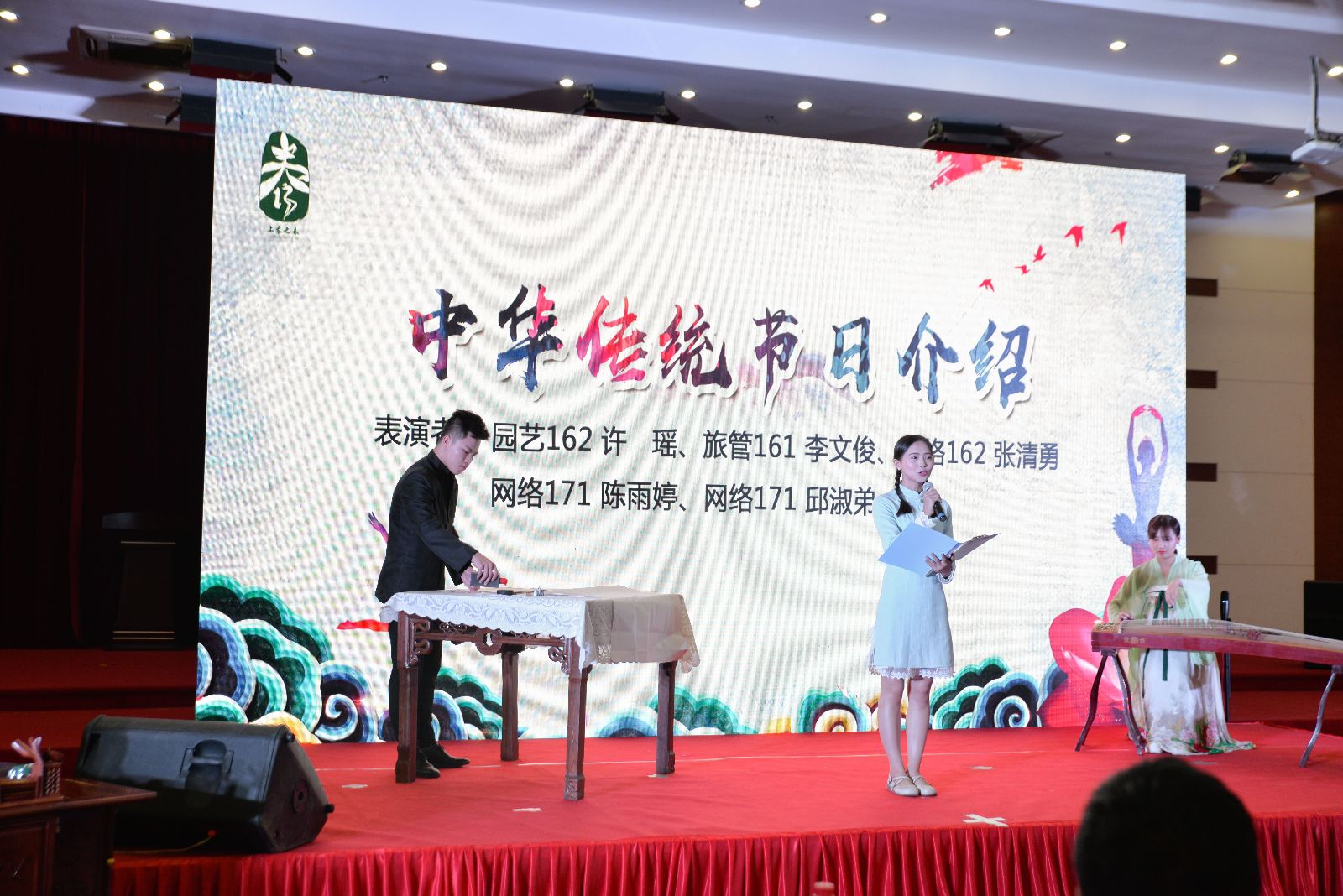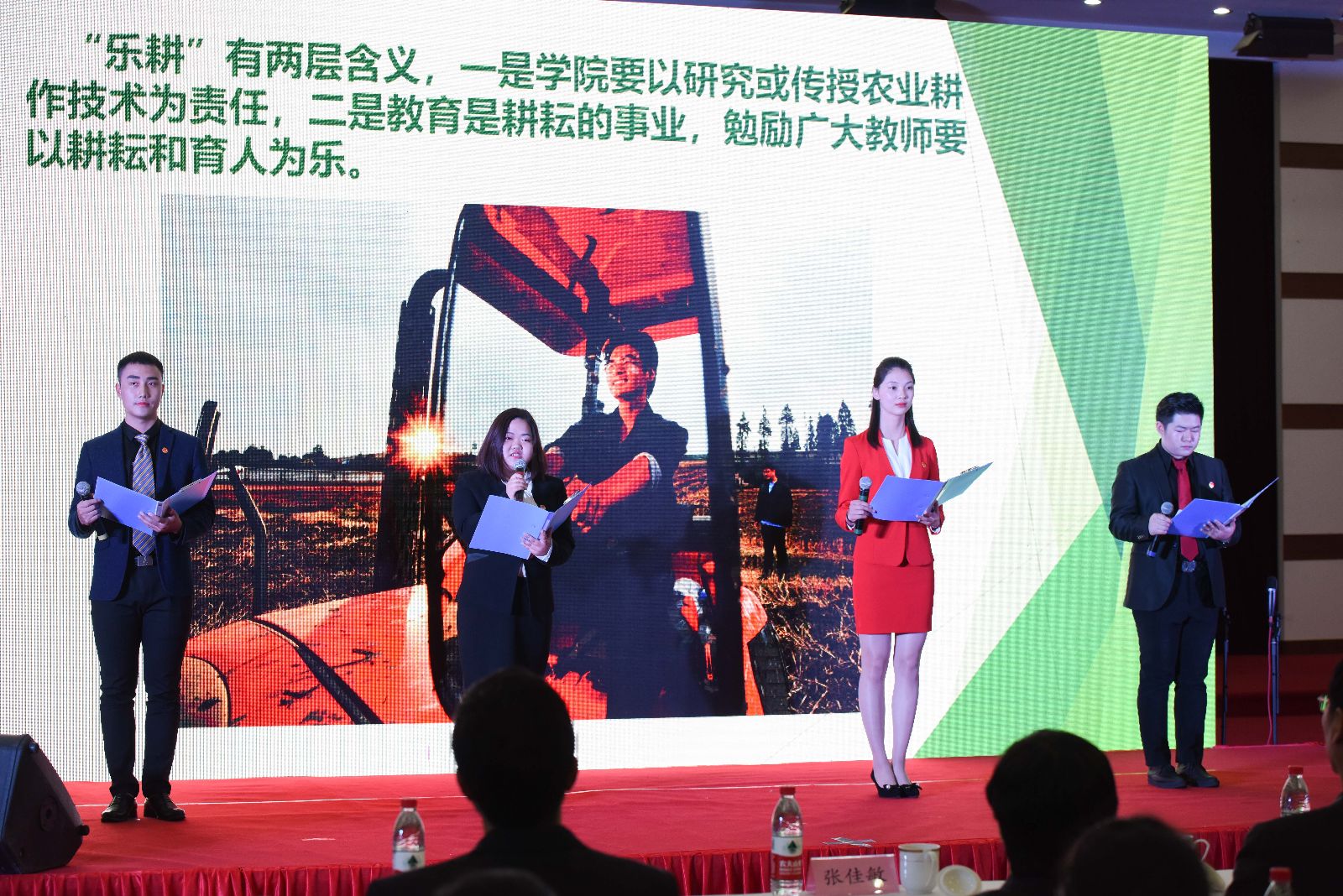开幕式共分《传统文化育人文》《渊源农耕浓人情》《文化自信聚人心》三个篇章。由潘家浜小学学生带来的诗歌朗诵《三字经》拉开活动序幕,汉服展示《悠悠中华情,浓浓华服爱》、中华传统节日介绍、舞蹈《采薇》等让现场师生感受到了在漫长发展中沉淀形成的优秀中华传统文化是中华民族的强大精神纽带;第二篇章环节介绍了二十四节气的由来与应用,呼吁要通过多种有益方式将我国二十四节气文化的精髓代代相传。根据校训所改编的朗诵《上农韵》、校歌表演等节目激励全体上农人传承“尚农乐耕 生生不息”的校训精神,不忘初心,牢记使命,坚守农业,服务农村,与母校一路携手同行,共创新辉煌。