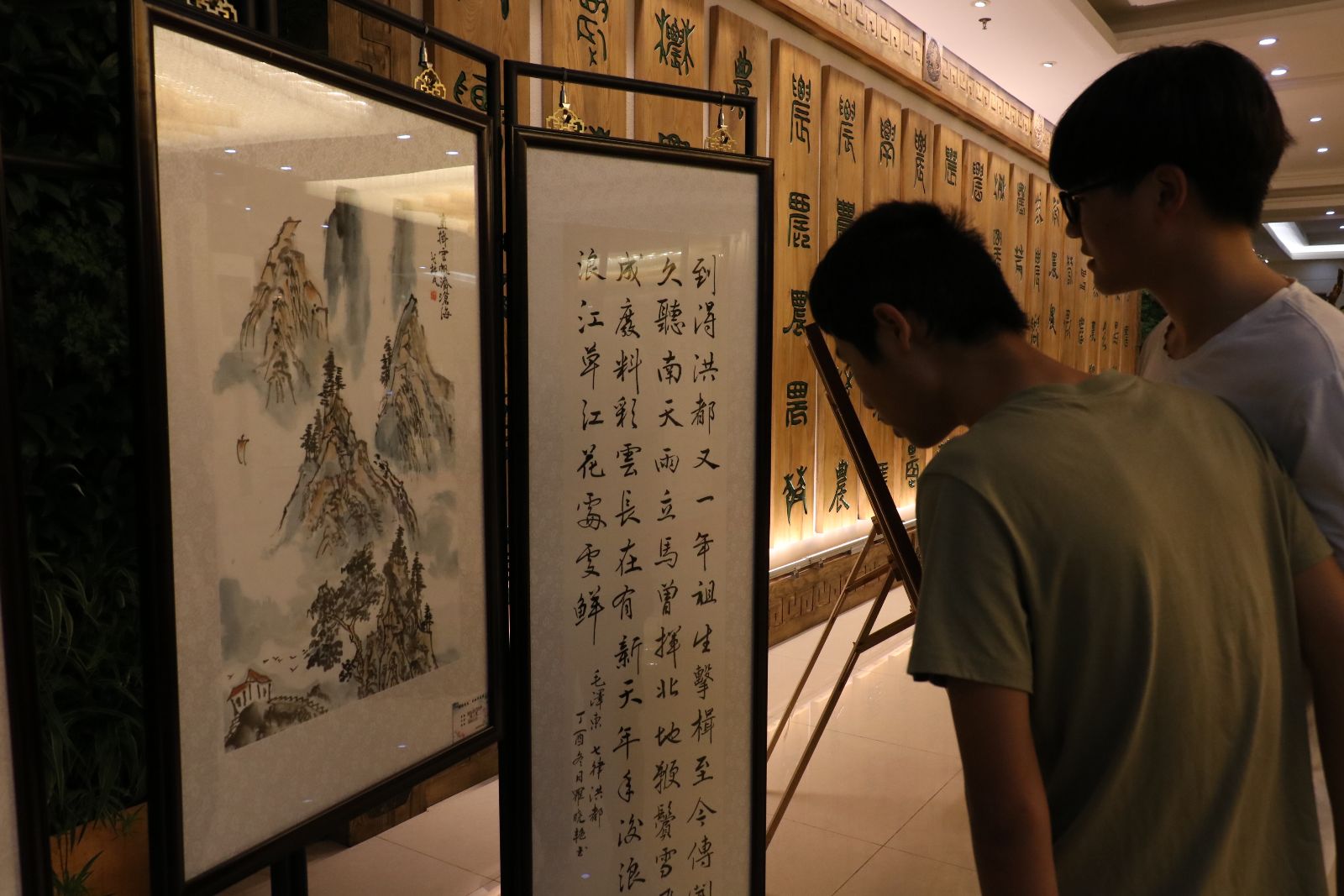 据悉,在为期一个多月的作品征集与准备活动中,共收到20余份创意作品和60余份书画作品,展出“五谷丰登”“学农、爱农、尚农”“尚农书屋”“闲梦园”等10份创意作品和“不忘初心”“桃李满天下”“直挂云帆济沧海”“星河”等24份书画作品。其中,农业作品颇具创意,其中“五谷丰登”是用红豆、小米、麦穗等7种杂粮食材粘结在1.2米长的麻布上拼出一幅农民伯伯秋收图;“学农、爱农、尚农”用红线勾勒花瓶形状、白线勾勒小篆等3种字体的“农”字,配以棉花、薰衣草和麦穗等7种农作物构成一组插花作品。各类书画作品同样引人驻足,或笔力雄健,或圆润流畅,秀丽舒朗,差错有致,在尽显中国传统文化之美的同时,也充分展现了当代大学生热爱传统文化和积极进取、勇于创新的青春风采。