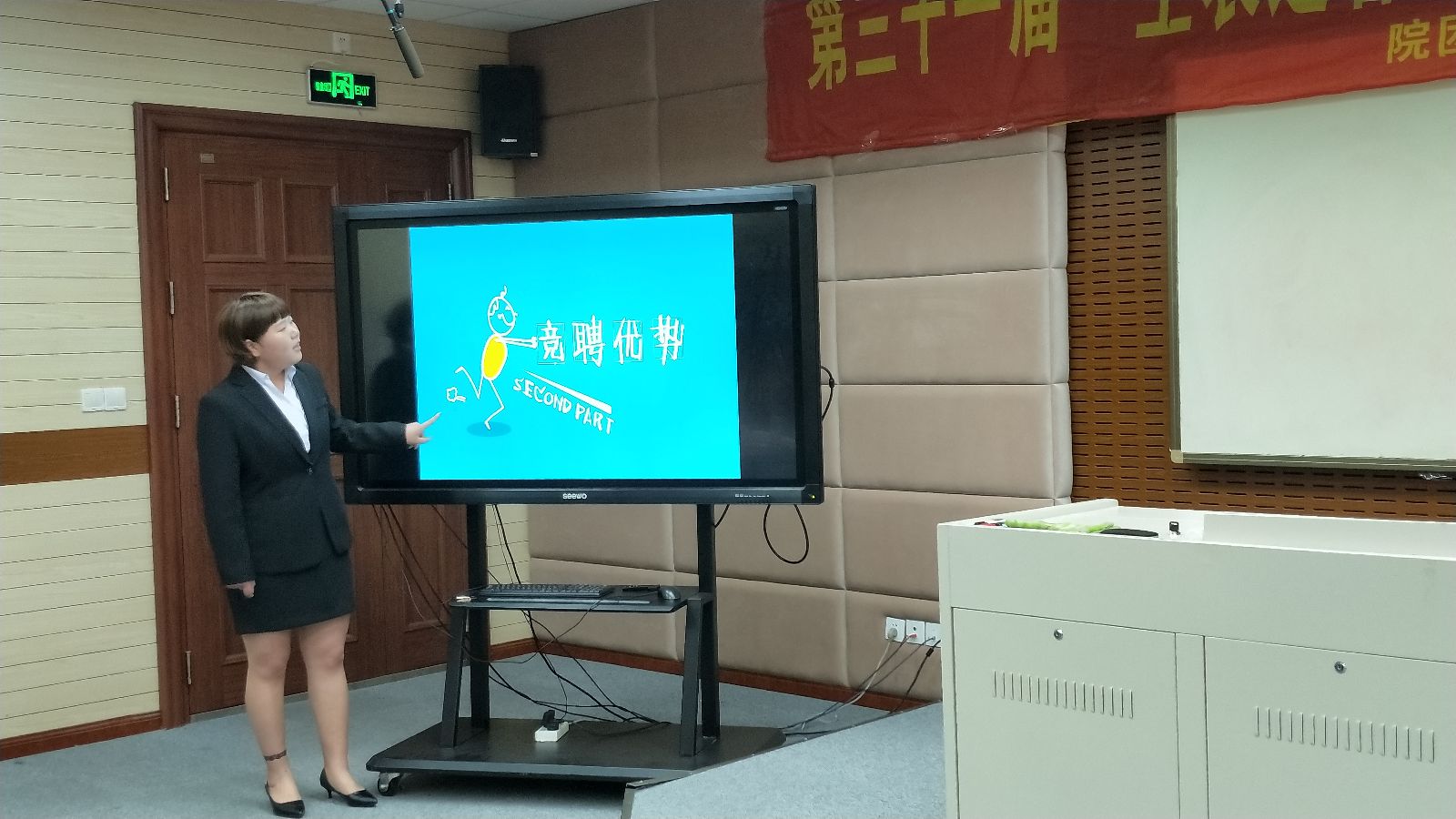经过前期近一个月的简历大赛评比,共有15名同学获得“最佳简历设计奖”,排名前八位的同学进入了最后决赛。决赛分为三个比赛环节,分别是自我展示环节、评委现场提问以及无领导小组讨论环节。第一环节中,选手们进行3-5分钟的自我介绍,把自己的优势展示给在场的观众和评委。可以看出,八位入围选手都很优秀,无论在学习成绩、学生工作及社会实践经验上都很突出。第二环节的问答过程中,选手们镇定自若,有条理的回答评委老师的问题,赢得了在场同学的阵阵掌声。无领导小组讨论环节模拟了现实职场面试的场景,对于同一个问题进行讨论,八位选手各抒己见,最终推荐了一名同学作为代表给出了问题的具体解决方案。