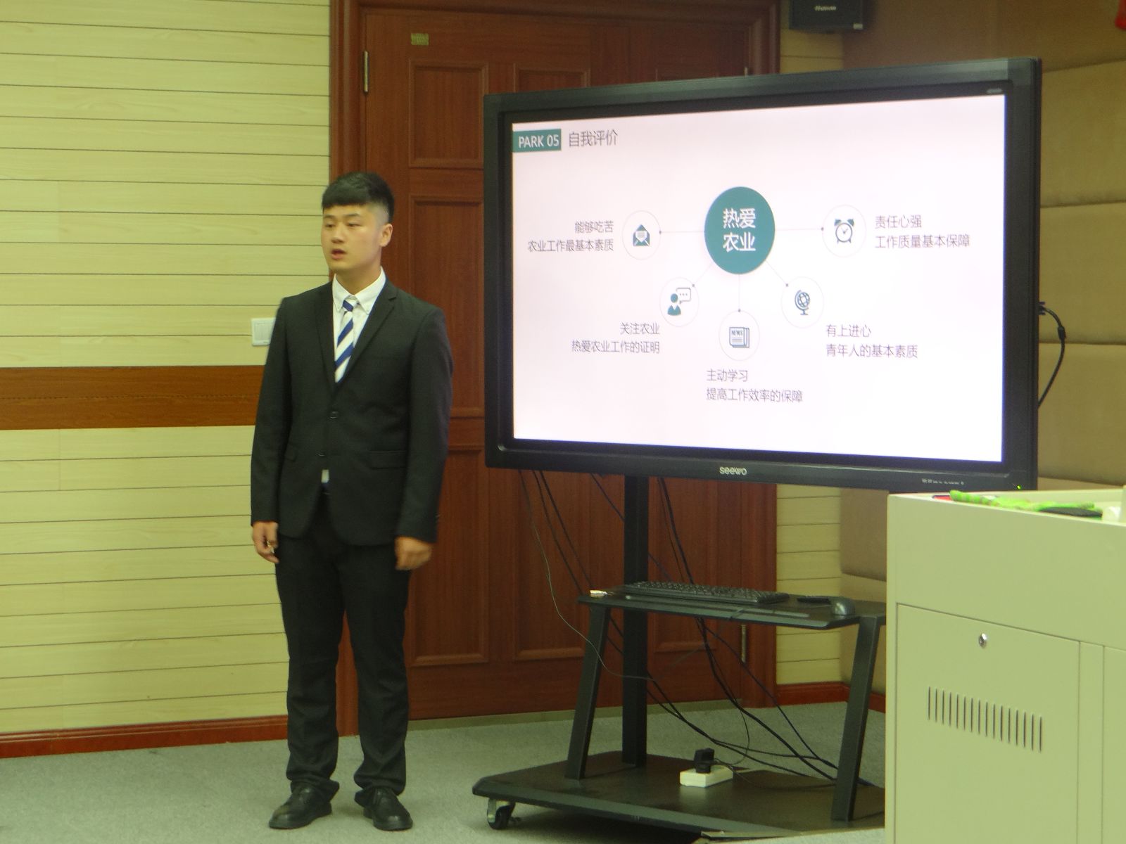 为帮助同学们提早适应职场氛围,提升面试能力,探求个人定位,确定求职方向,5月29日下午,由院团委、就业指导中心、动物科学技术系团总支共同举办的大学生求职模拟大赛决赛在综合楼403室举行。学院副院长张佳敏、系部党支部书记、企业HR、就业指导中心和团委相关老师担任此次决赛评委。