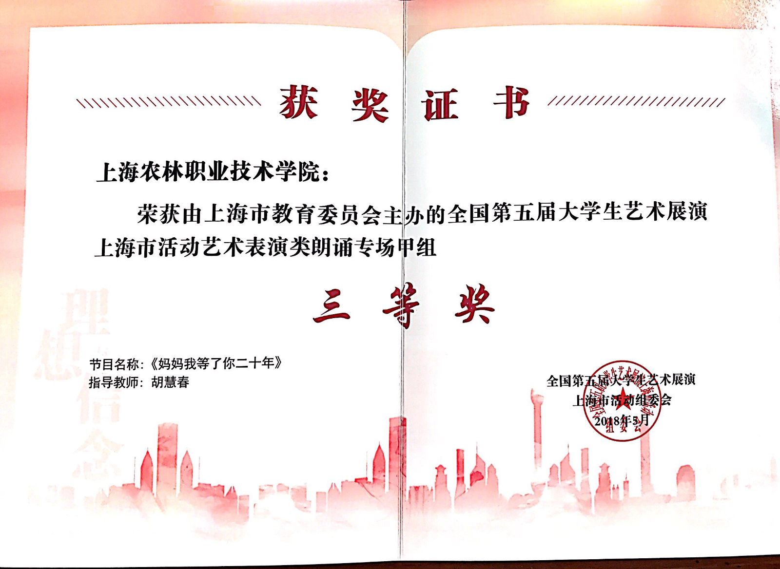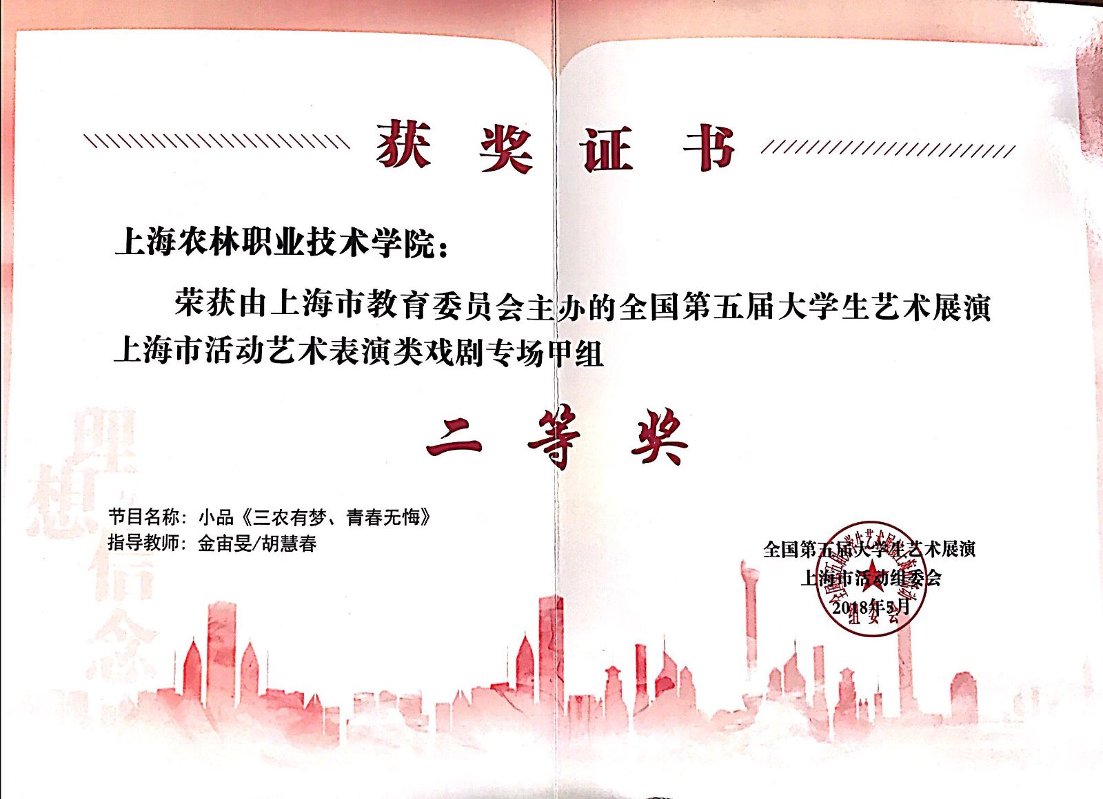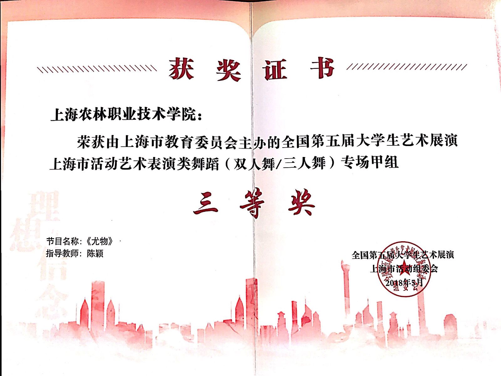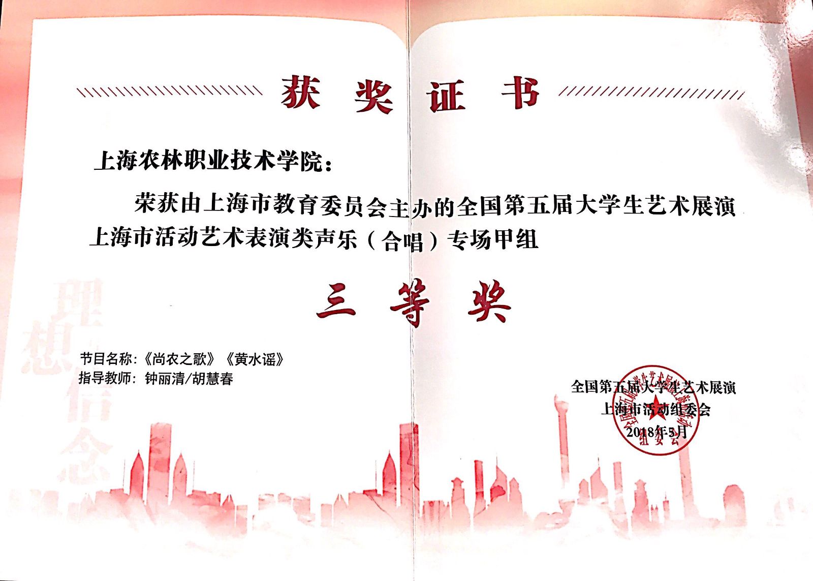 近日,全国第五届大学生艺术展演上海市活动成绩纷纷揭晓,学院获得三项二等奖、四项三等奖的荣誉。