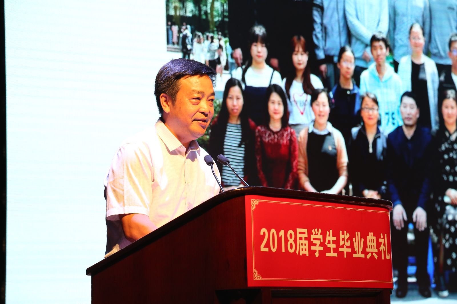 7月1日,在大礼堂,学院举行2018届学生毕业典礼。党政领导魏华、俞锦禄、谢锦平、王军亮出席,各系党政负责人、相关部门负责人、辅导员、班主任和2018届全体学生参加。