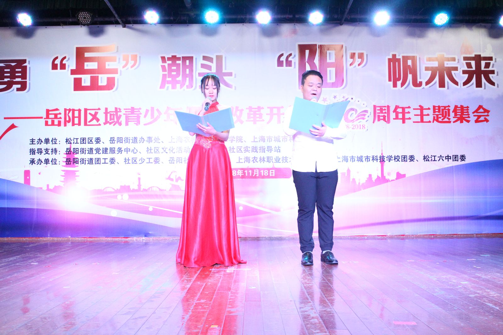 11月18日,勇“岳”潮头 “阳”帆未来——岳阳区域青少年庆祝改革开放40周年上海农林职业技术学院文艺专场演出在岳阳文体中心剧场举行,团委负责人、学生代表以及岳阳区域青少年代表等200余人一同观看了演出。