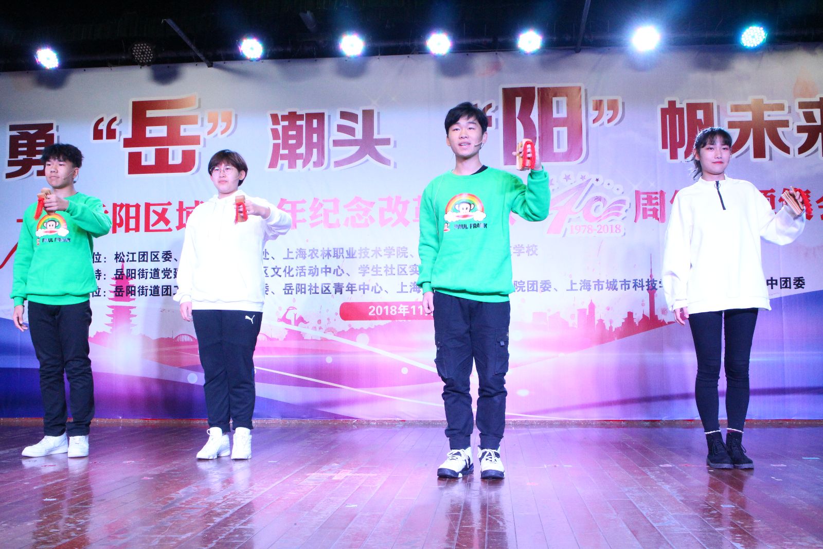 此次演出由松江团区委、岳阳街道办事处、上海农林职业技术学院团委和上海市城市科技学校共同主办,通过参与演出,学子们以实际行动进一步坚定了理想信念,践行了历史使命,弘扬了青春能量,以良好的精神风貌为庆祝改革开40周年献上了大学生志愿者最诚挚的祝福,为实现中华民族伟大复兴的中国梦贡献青春力量。