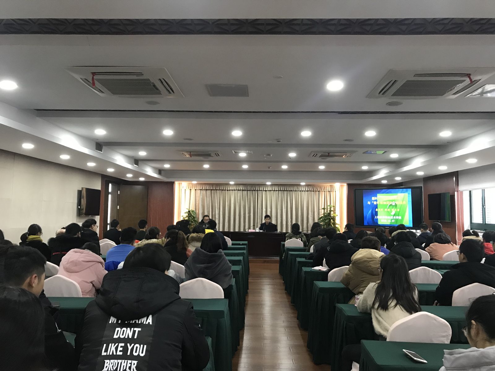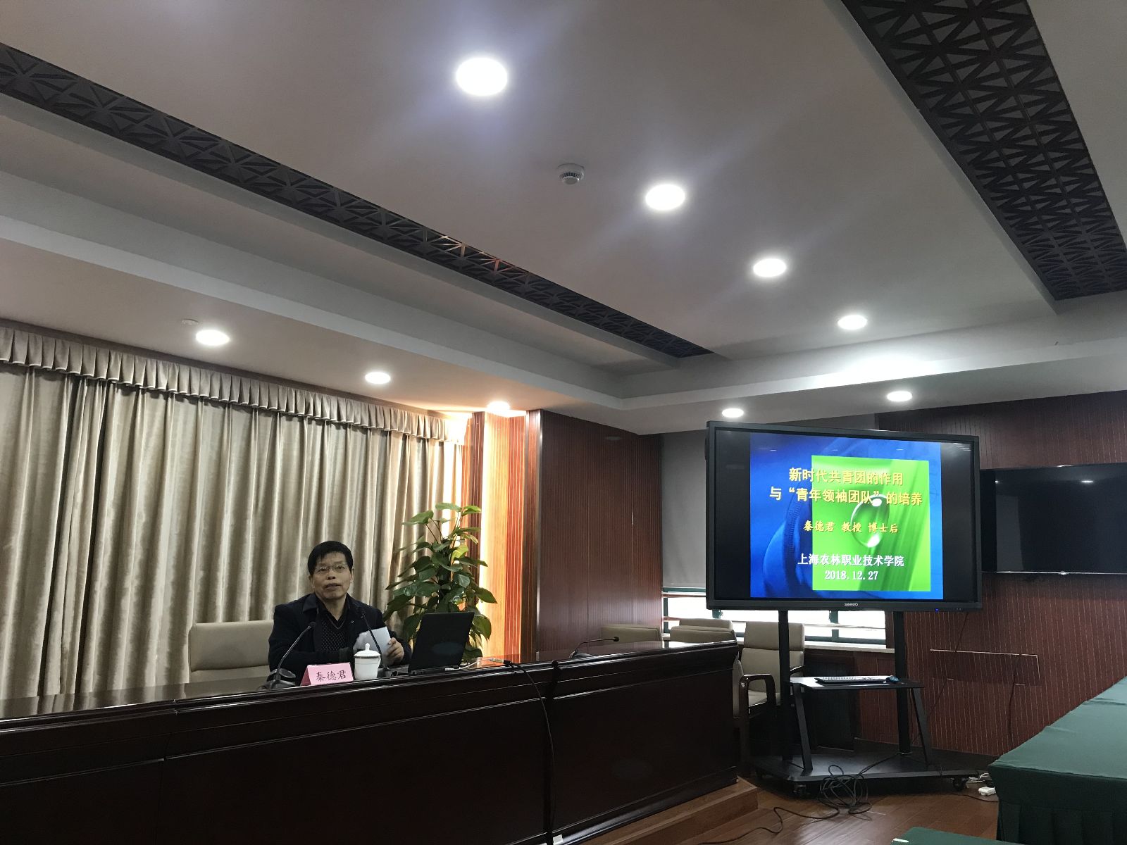 12月27日,在第三会议室,院团委举行青年大学习专题培训,邀请到上海市政治学会副会长、东华大学人文学院秦德君教授授课,团委负责人、各系团总支书记及团学干部代表100余人聆听了报告。