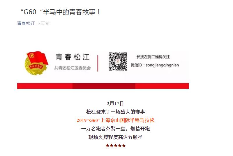 3月18日,青春松江、微松江微信公众号报道我院参加2019“G60”上海佘山国际半程马拉松志愿者。