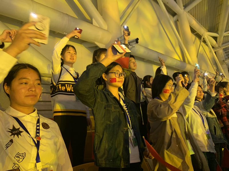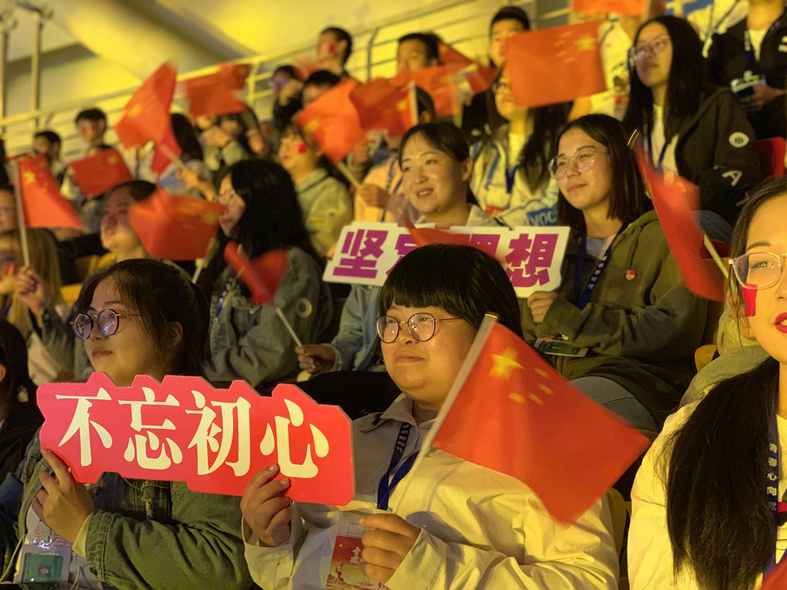 农经171班李显同学讲到:“在现场聆听了《五四纪念爱国歌》《光荣啊,中国共青团》《年轻的力量》《不忘初心》《我和我的祖国》等一首首经典歌曲,带我们重温了百年前的那段峥嵘岁月,回顾了这百年间中国的崛起,更唱出了新时代青年的昂扬斗志”。网络181班彭小容谈到:“现场听到了唱《我是明星》《世界》《年轻的力量》等“志愿者”歌曲串烧,依稀记得11年前的北京奥运会开幕式,我还是小学生,在电视上看到鸟巢的盛景,心中充满了自豪感。去年自己也参与了进博会志愿服务,作为当代青年,能有机会为上海建设、国家发展服务,能够成为展现我国的大国形象的志愿者,感到非常光荣与自豪。”