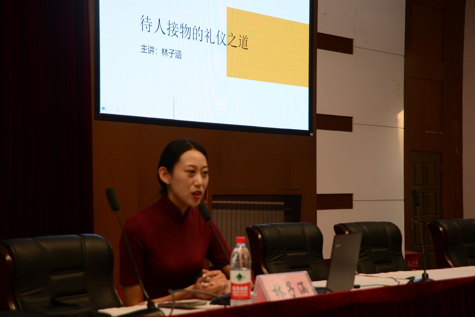 林子涵老师以《待人接物的礼仪之道》为主题,从最正确的鼓掌开始,纠正日常生活中大家容易忽略的礼仪常识。为了达到更好的培训效果,林子涵老师通过现场示范和现场互动教学,分别讲授了鞠躬、称呼、介绍、行车、站姿、引导等日常生活和人际交往中所需的礼仪,加深了学生对于日常礼仪的掌握和理解。整场讲座内容丰富,互动性强,气氛热烈,同学们十分珍惜这次机会,认真聆听和练习各种动作,及时与培训师沟通交流。并不时报以热烈的掌声,取得了良好的教育效果。